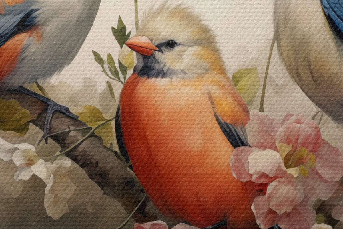 Runde Wandbilder Eine Gruppe von Vögeln auf einem Zweig mit Blumen r38103