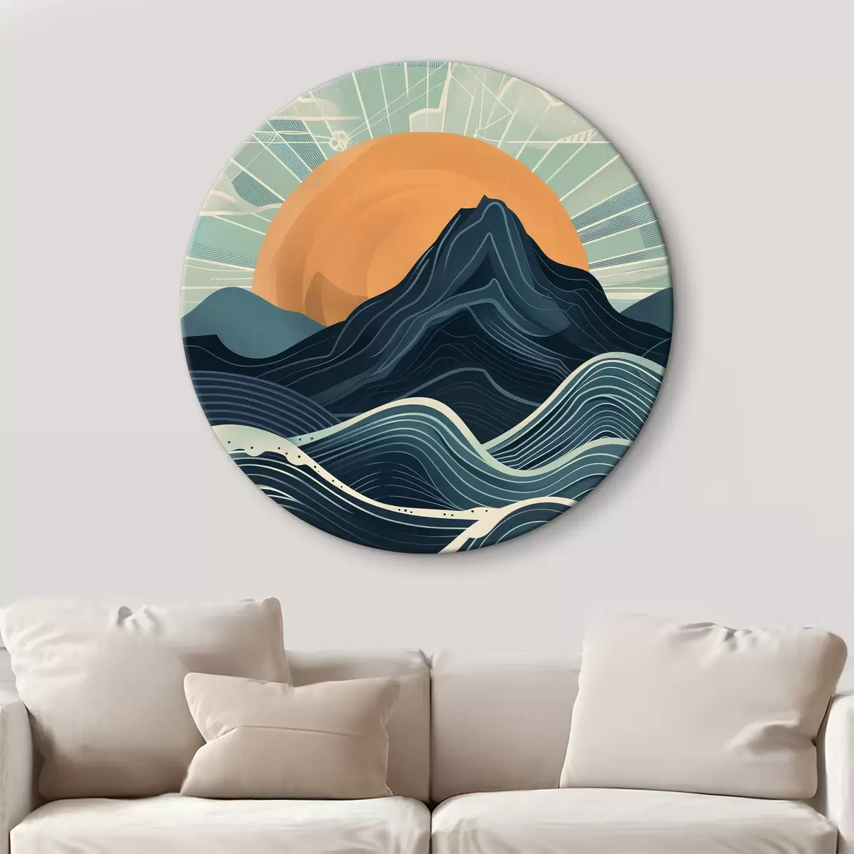 Runde Wandbilder Sonnenuntergang in den Bergen r38138
