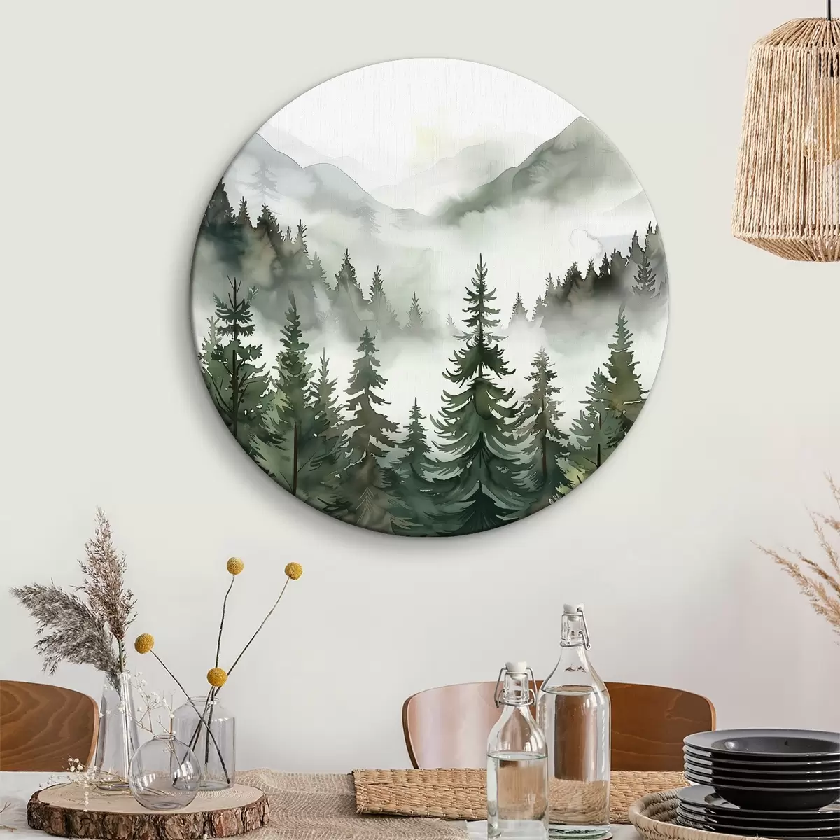 Runde Wandbilder Landschaft mit Bäumen und Bergen Nr r38139