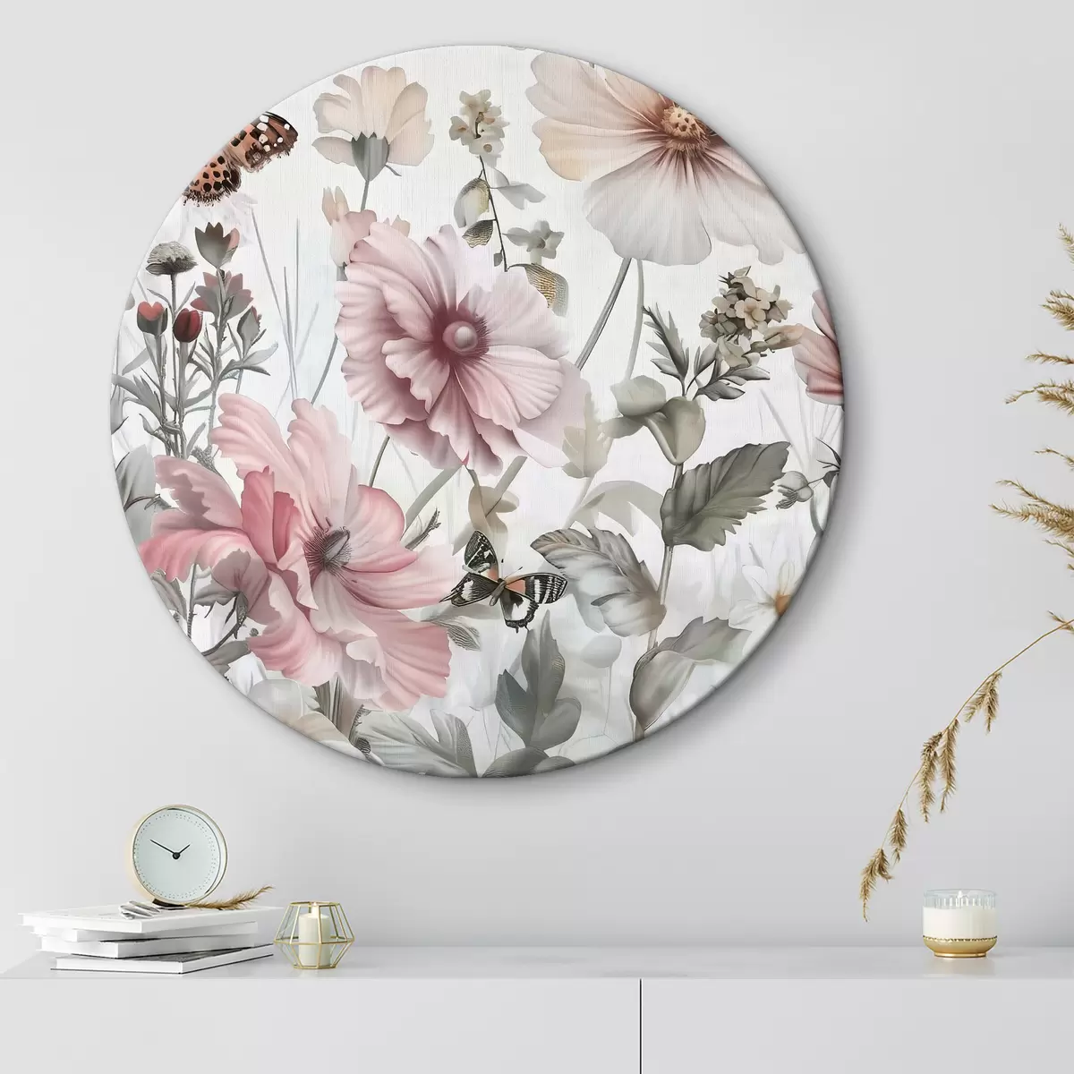 Runde Wandbilder Nahaufnahme von Blumen und Schmetterlingen r38153