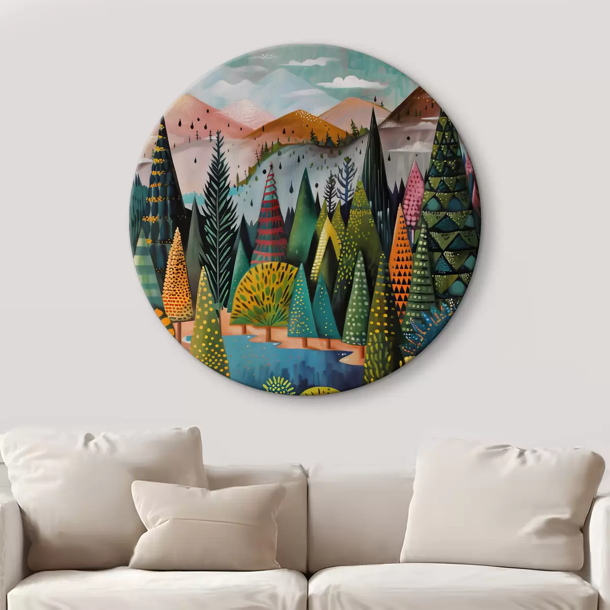 Runde Wandbilder Ein Gemälde mit Bäumen und einem Fluss Nr r38157