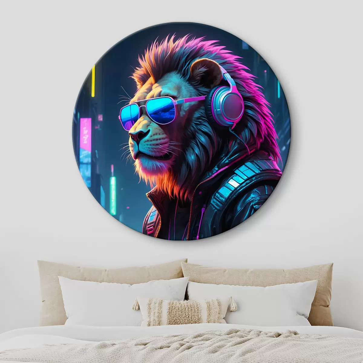 Runde Wandbilder Löwe vor hellem Stadthintergrund Nr r38169