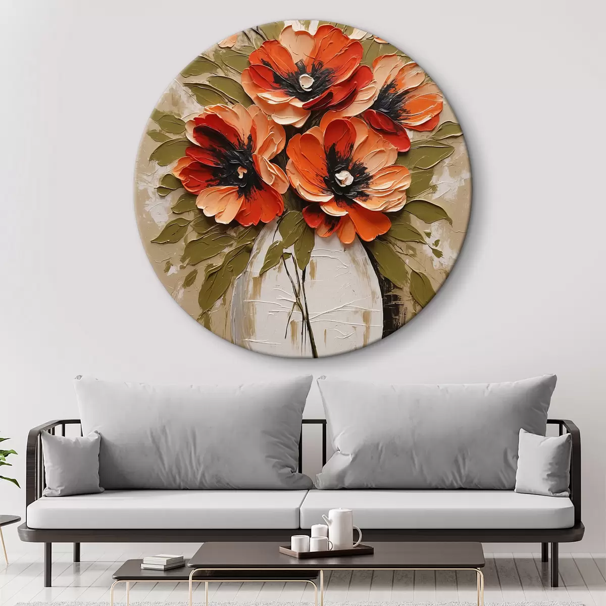 Runde Wandbilder Blumen in weißer Vase auf rosa Hintergrund r38176