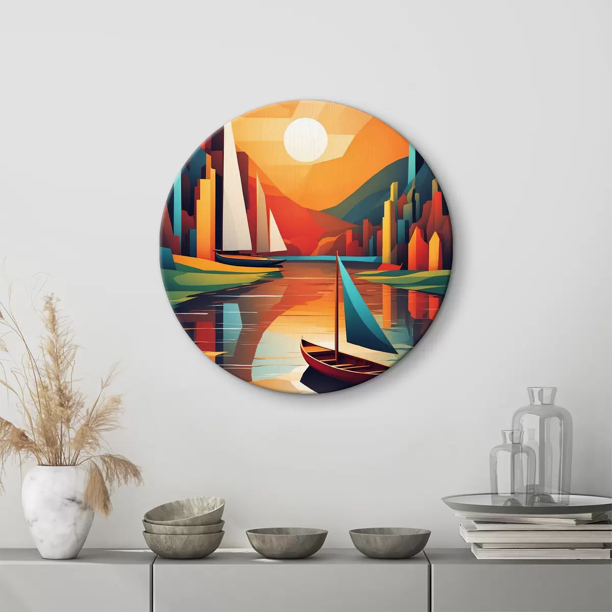 Runde Wandbilder Boot auf dem Fluss. Vektorgrafik Nr r38179