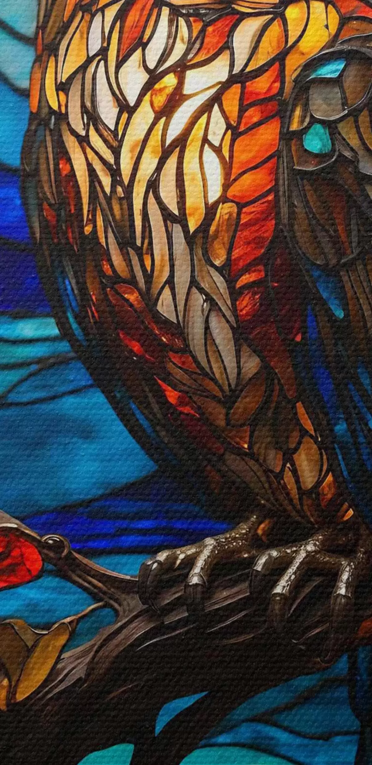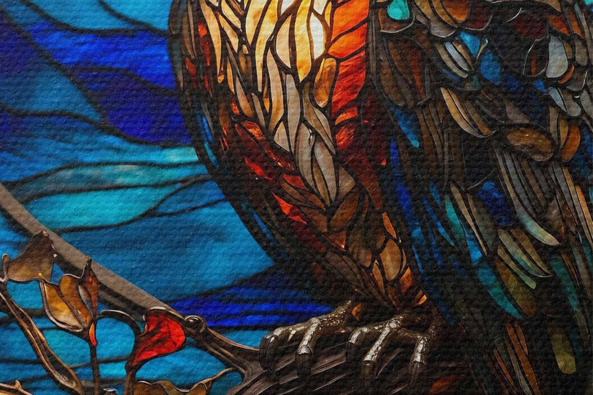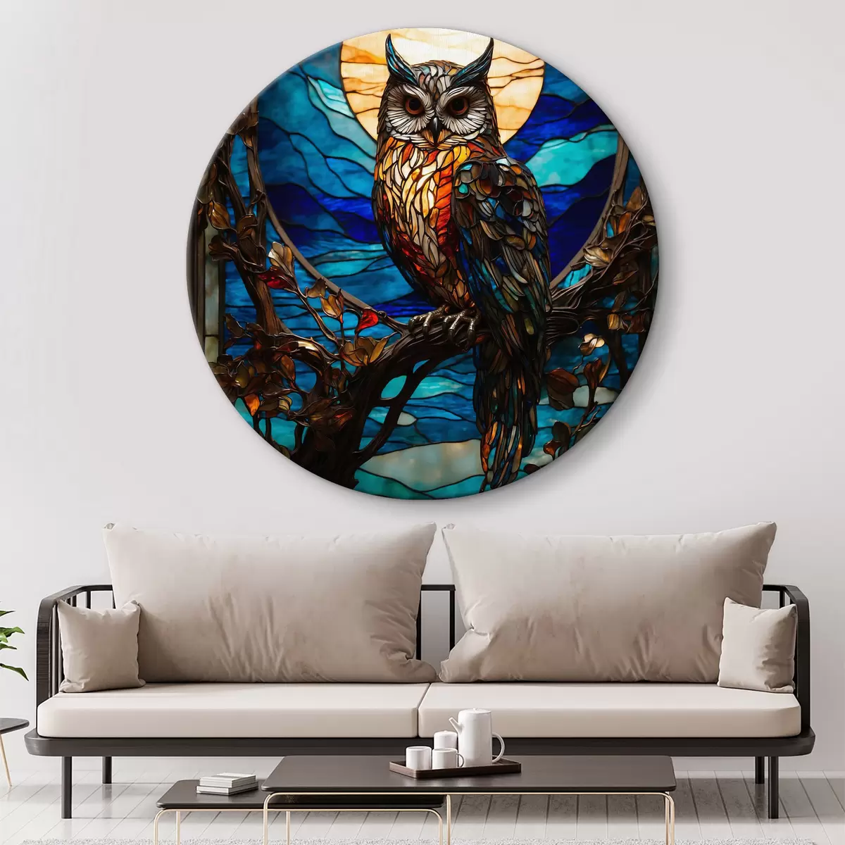 Runde Wandbilder Glasmalerei Eule auf einem Baumzweig Nr r38185