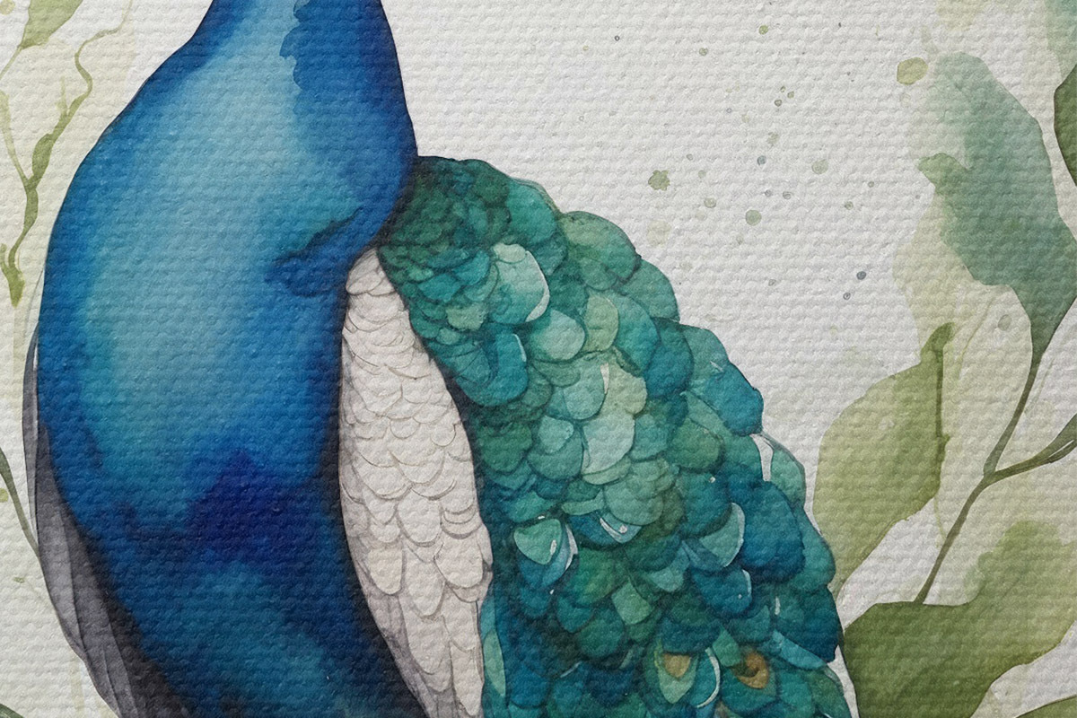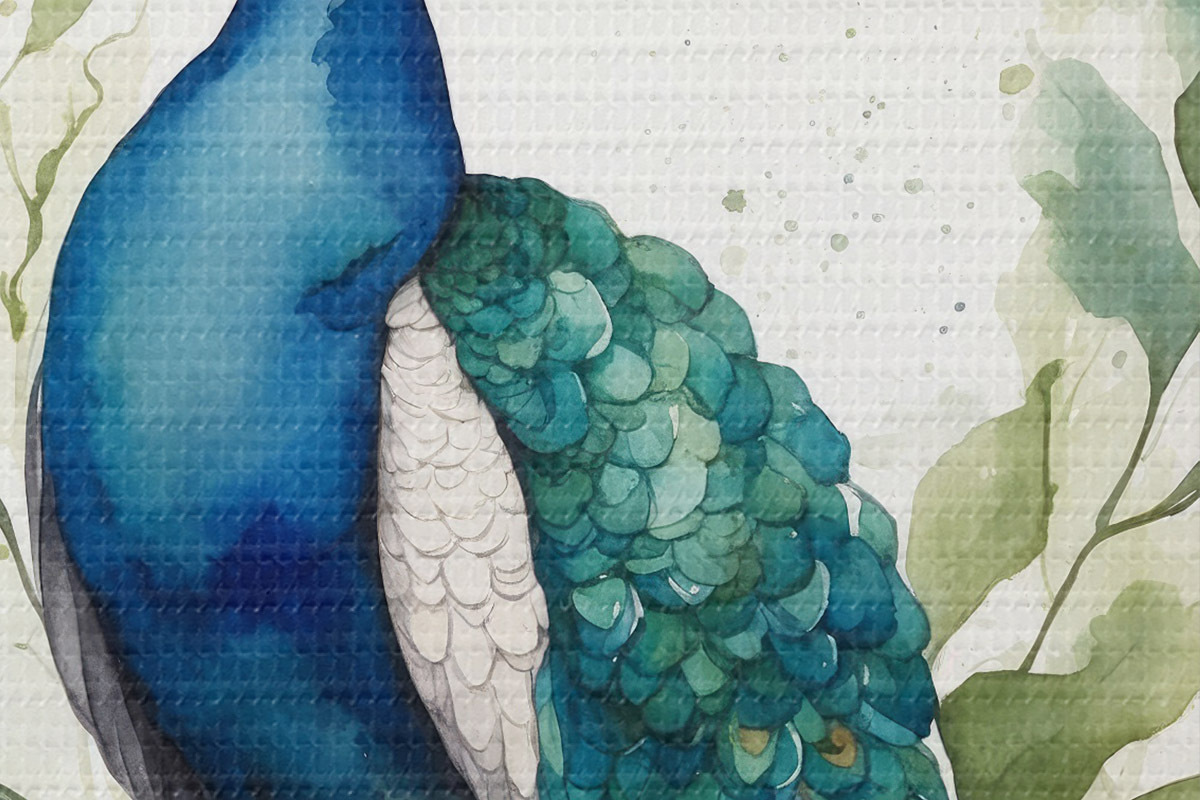 Runde Wandbilder Pfau in Aquarell r38189