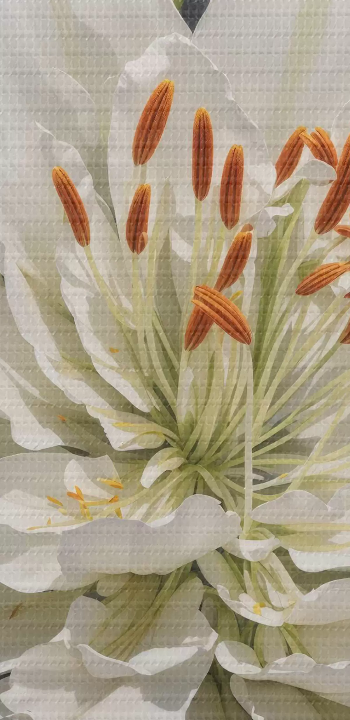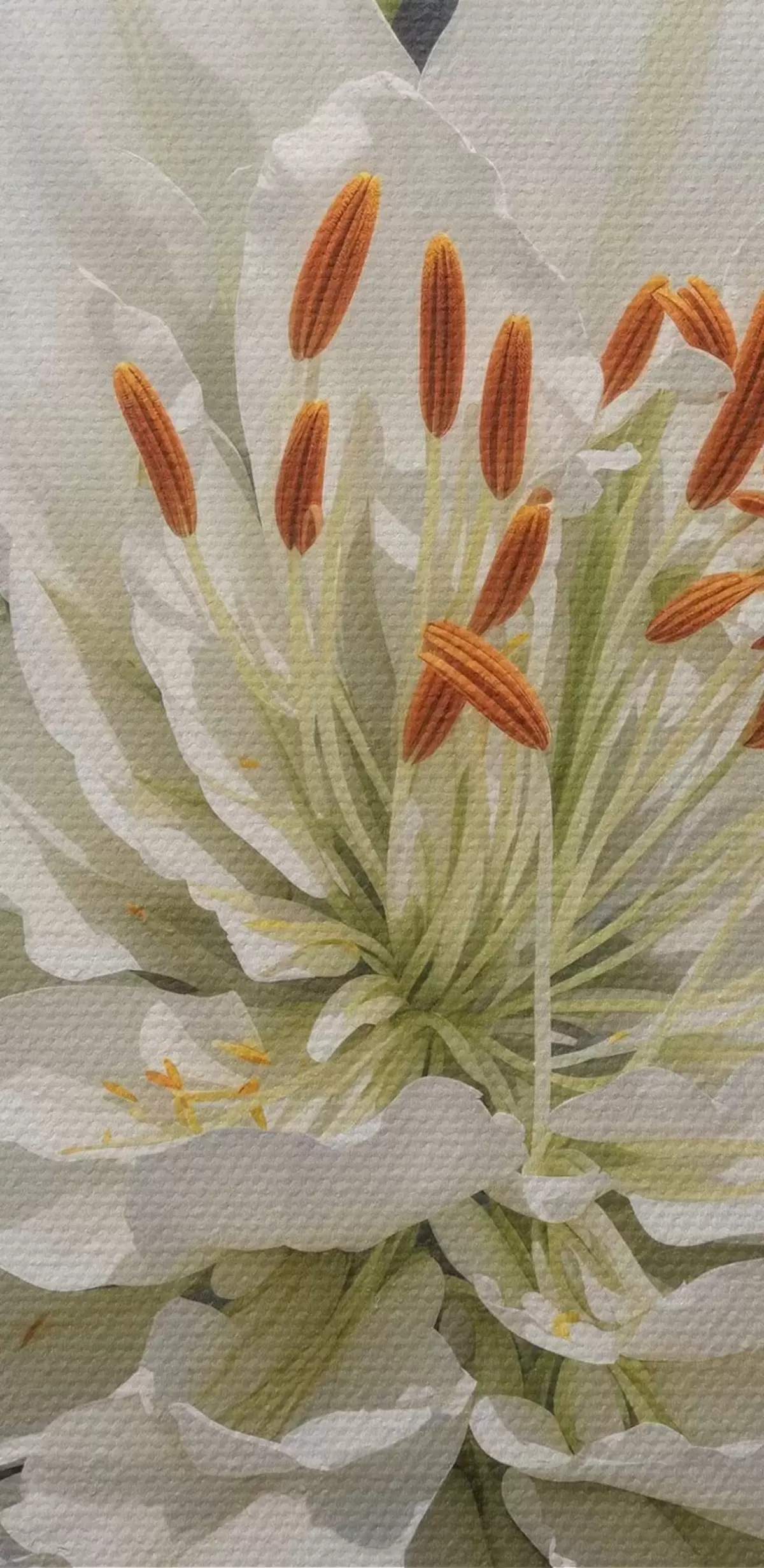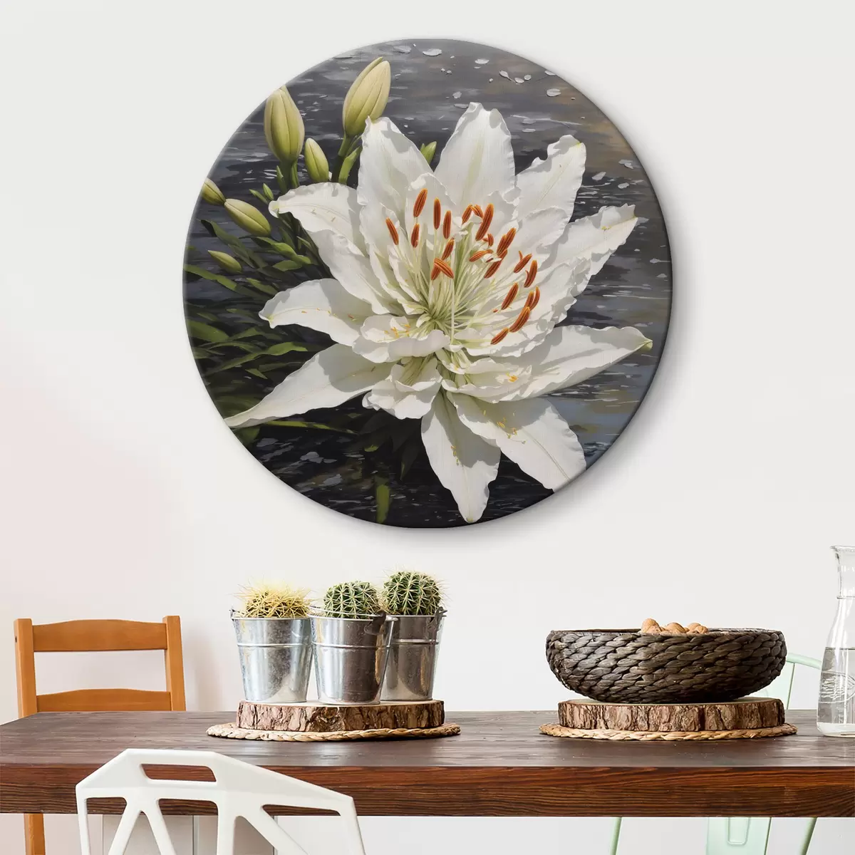 Runde Wandbilder Weiße Blüte mit orangefarbenen Staubgefäßen und Knospen Nr r38192