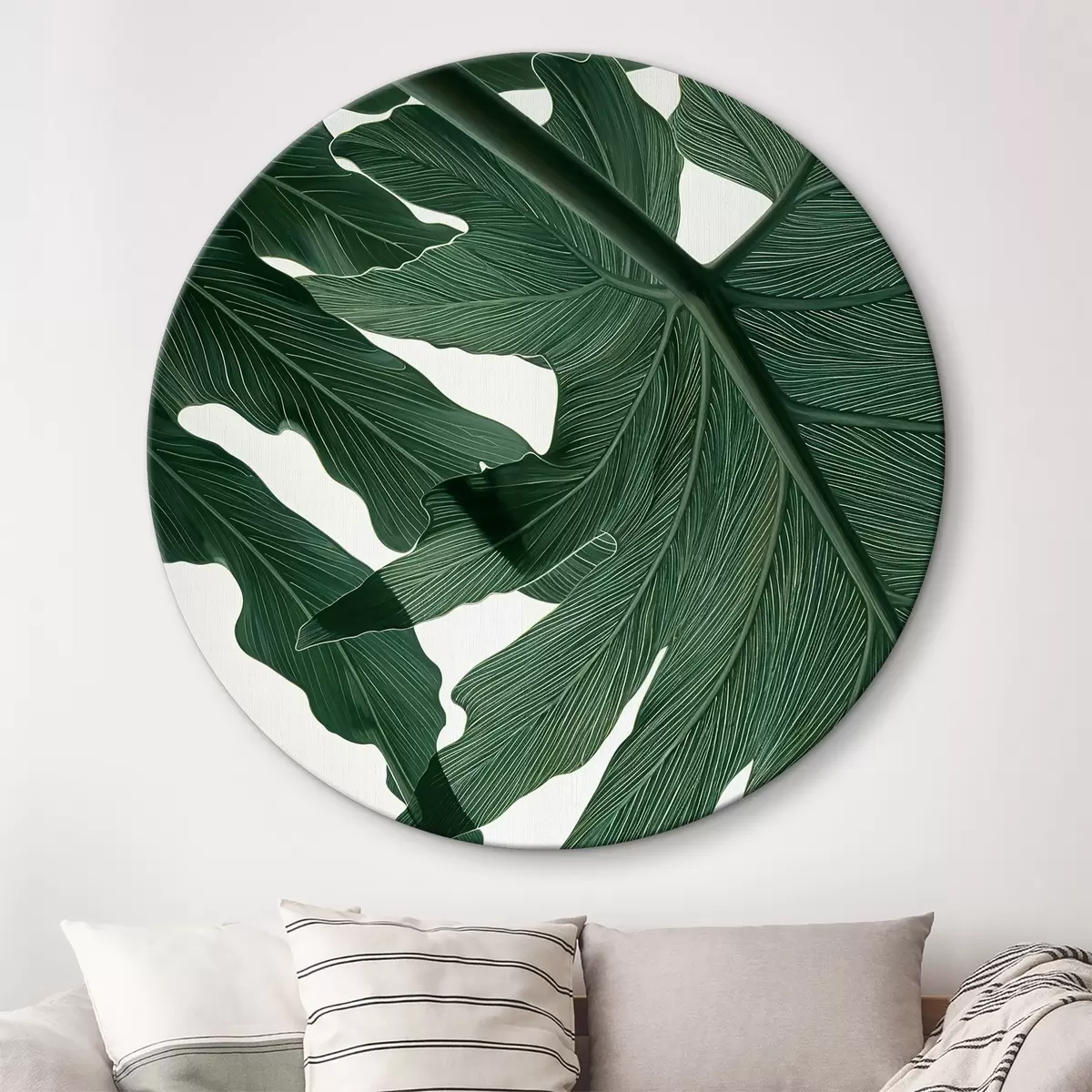 Runde Wandbilder Große Farnblätter auf weißem Hintergrund im modernen Stil r38203