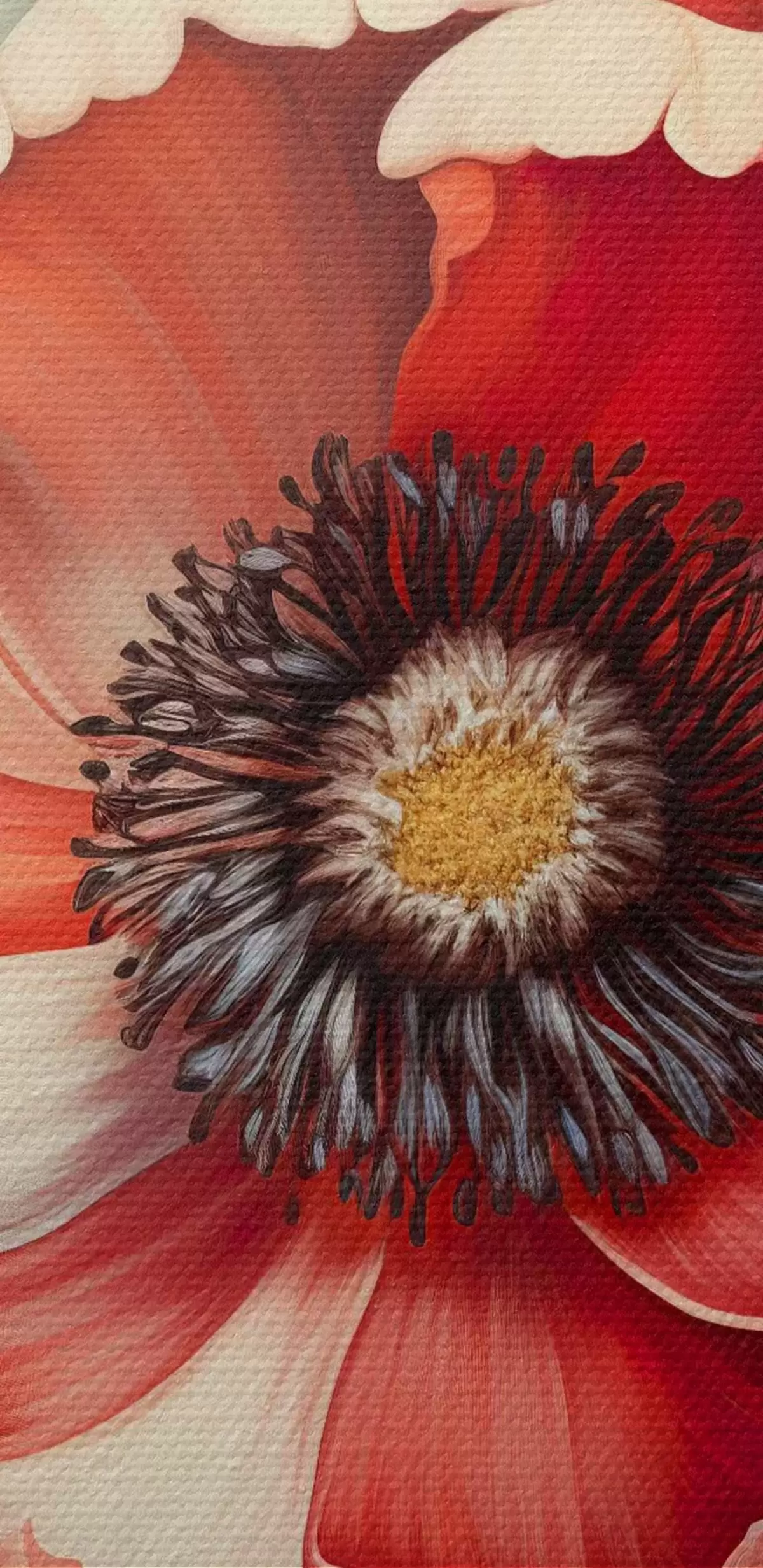 Das feine Fadengeflecht auf dieser Leinwand ähnelt der Oberfläche von professionellen Künstlerleinwänden.