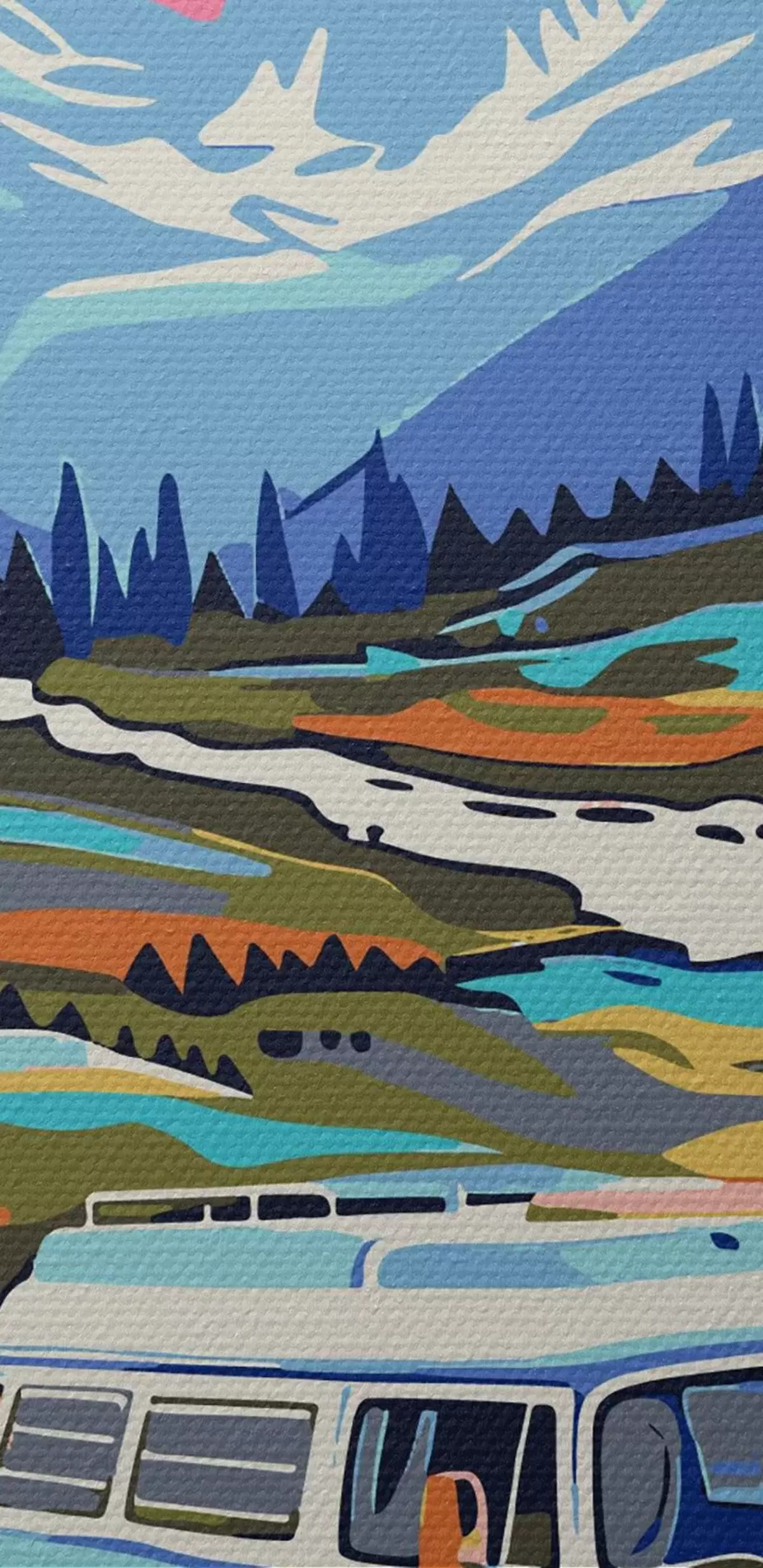 Um die Leinwand auf Keilrahmen zu spannen, ohne das Bild zu beschädigen, verwenden wir ein gespiegeltes Bild.