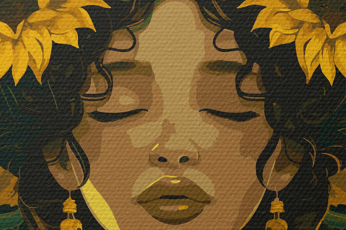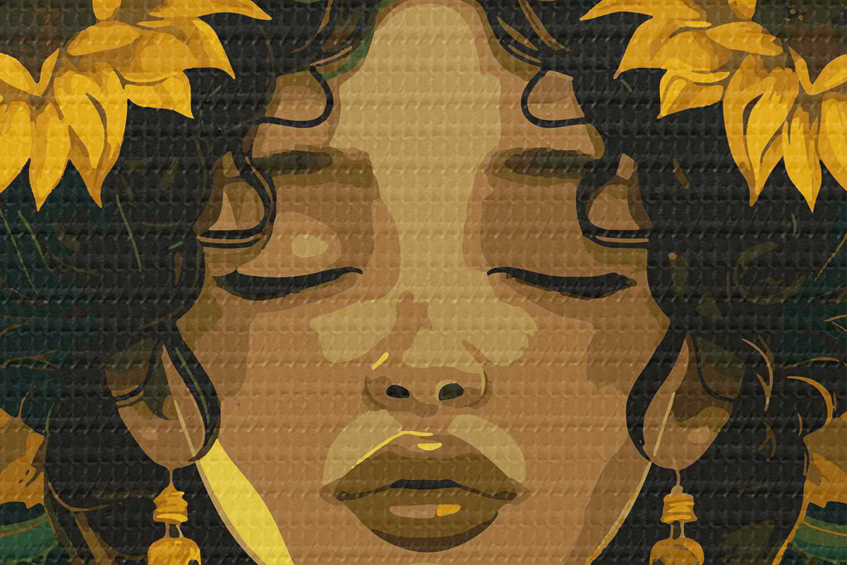 Runde Wandbilder Frau mit Sonnenblumen in ihrem Haar r38263