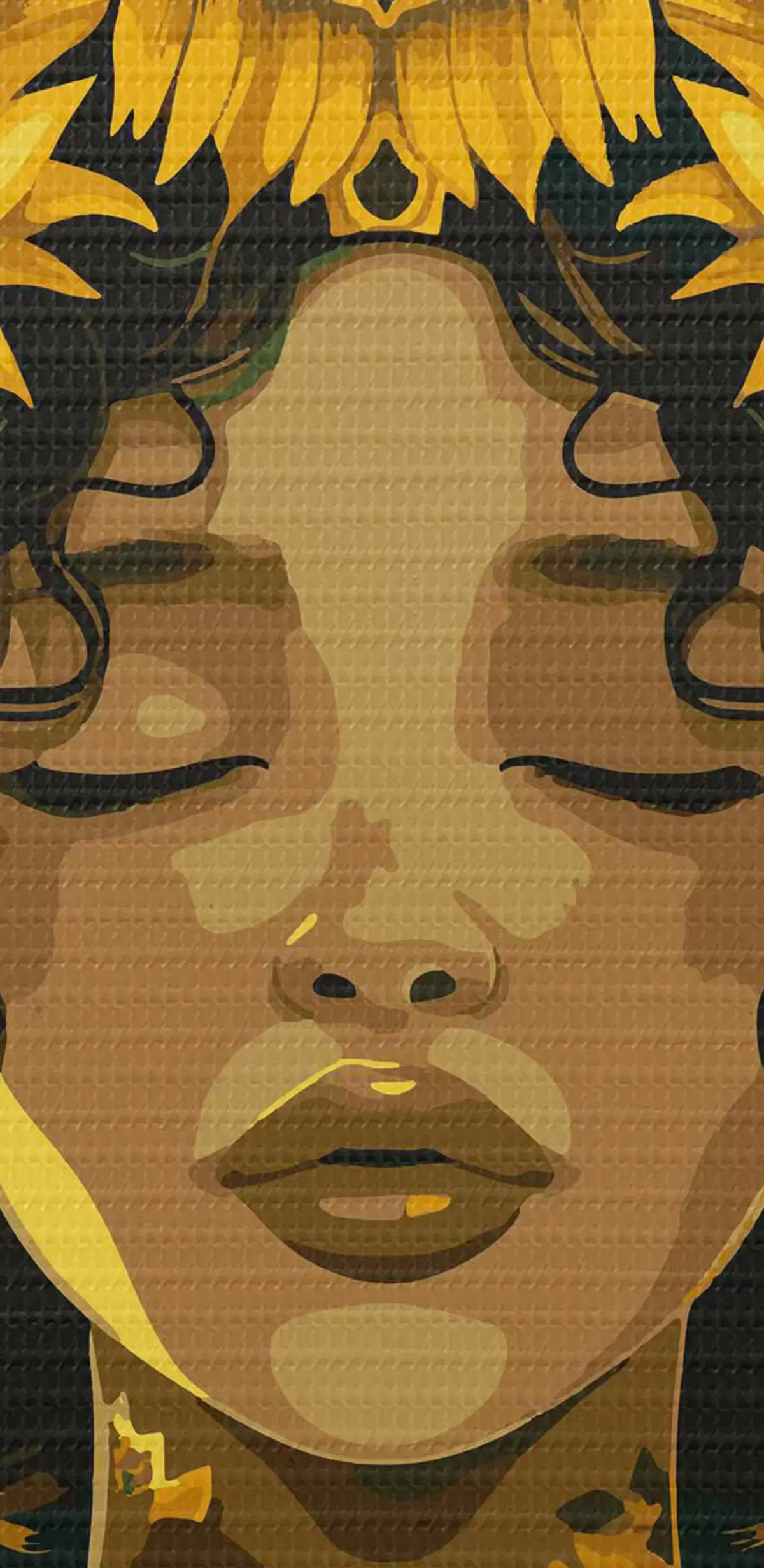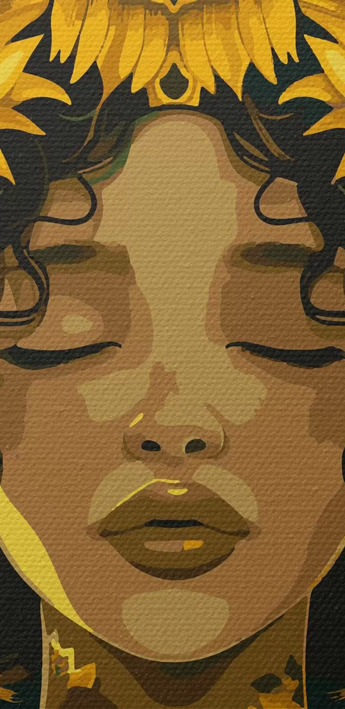 Runde Wandbilder Frau mit Sonnenblumen in ihrem Haar Nr r38263