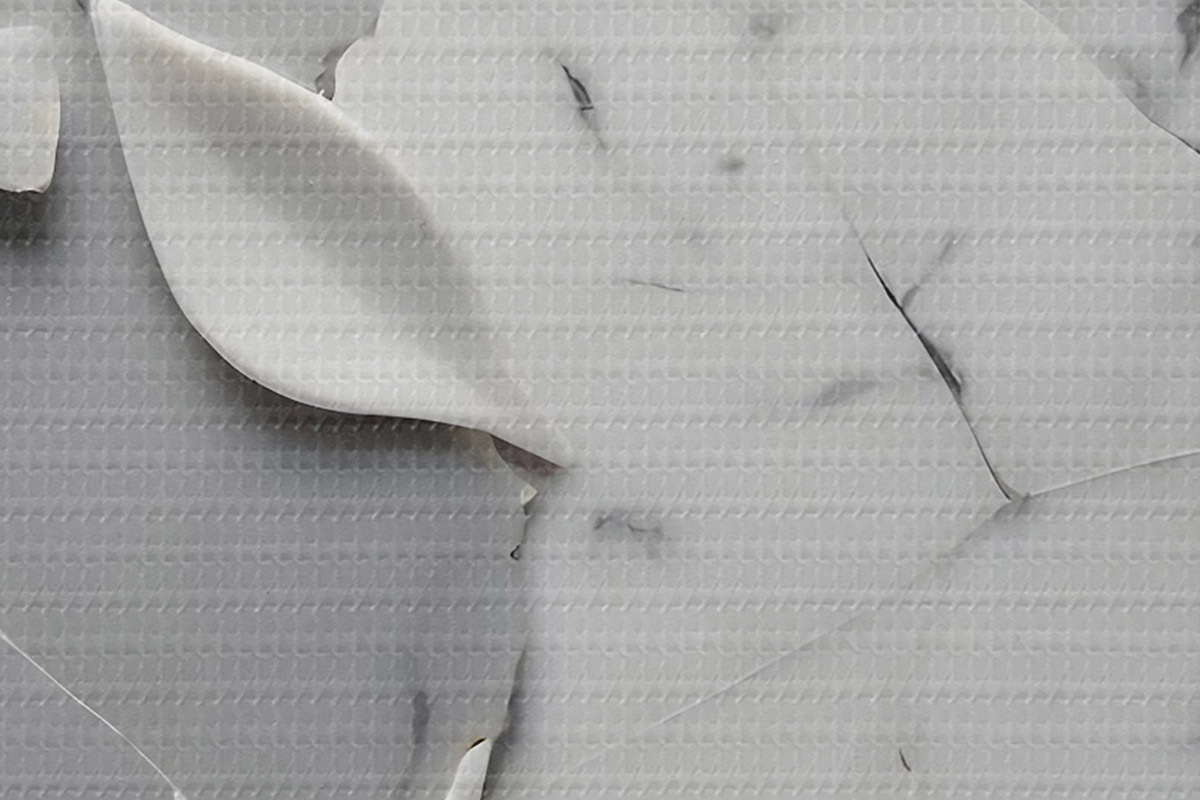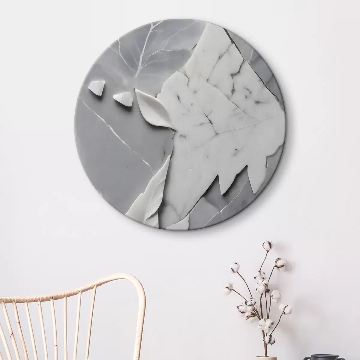 Runde Wandbilder Oberfläche aus weißem und grauem Marmor mit Blättern r38272