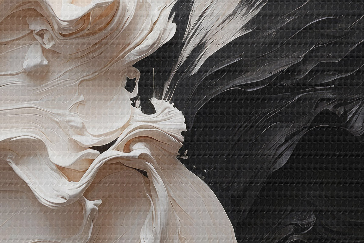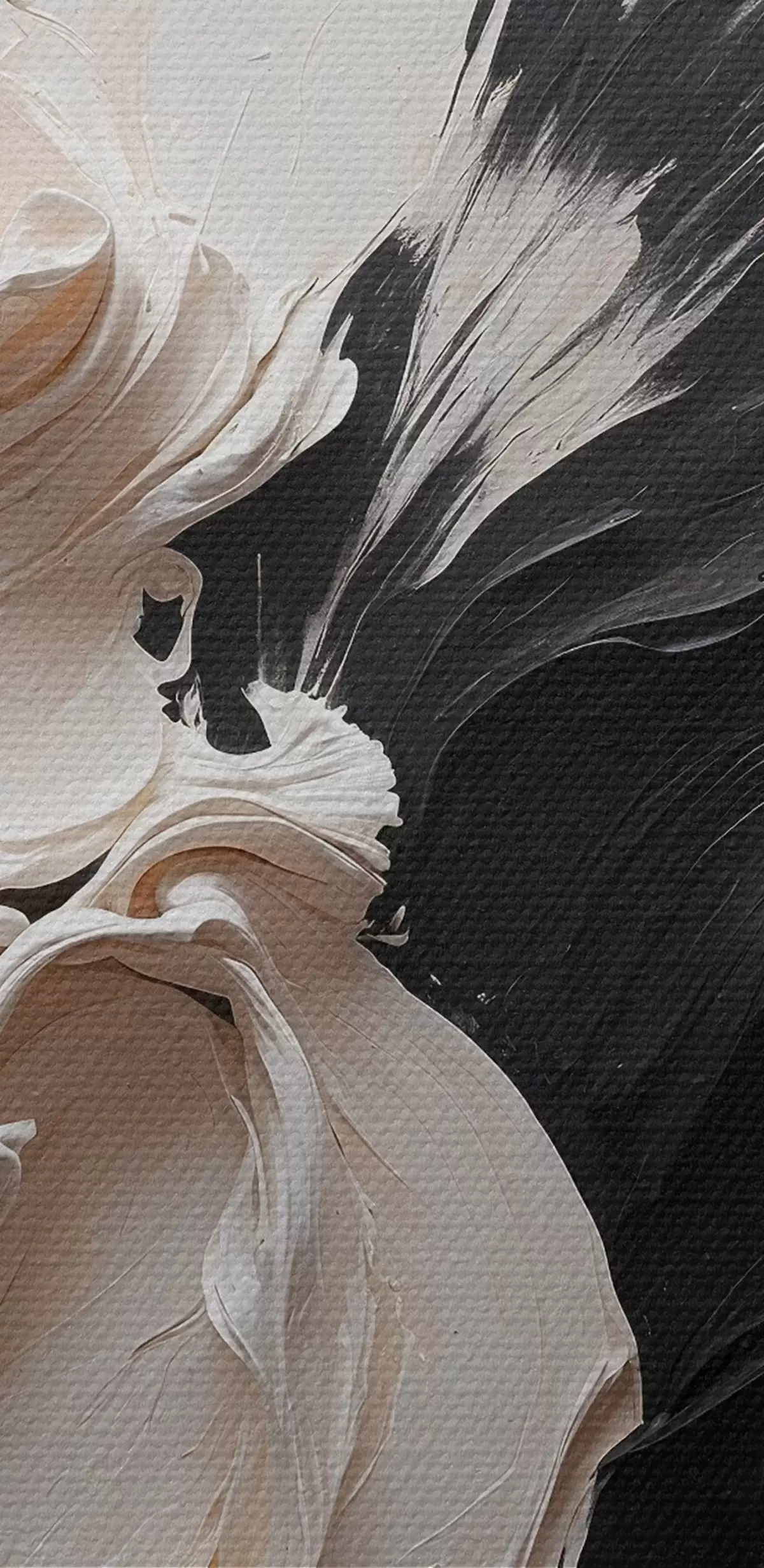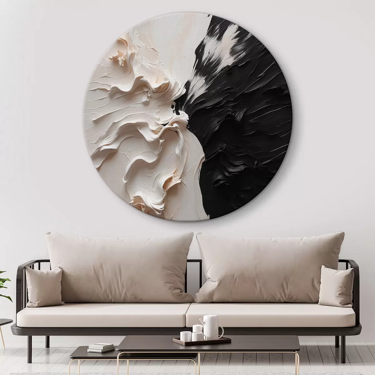 Runde Wandbilder Abstraktes Ölgemälde in Weiß- und Schwarztönen r38300