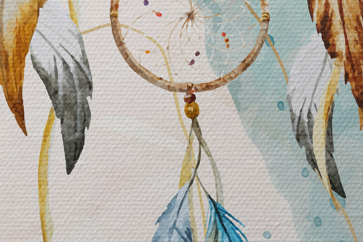 Runde Wandbilder Aquarell, Traumfänger, Federn, Pastell Nr r38330
