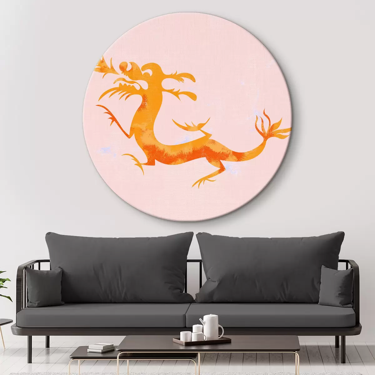 Runde Wandbilder Orangefarbener Drache mit langem Schwanz r38336
