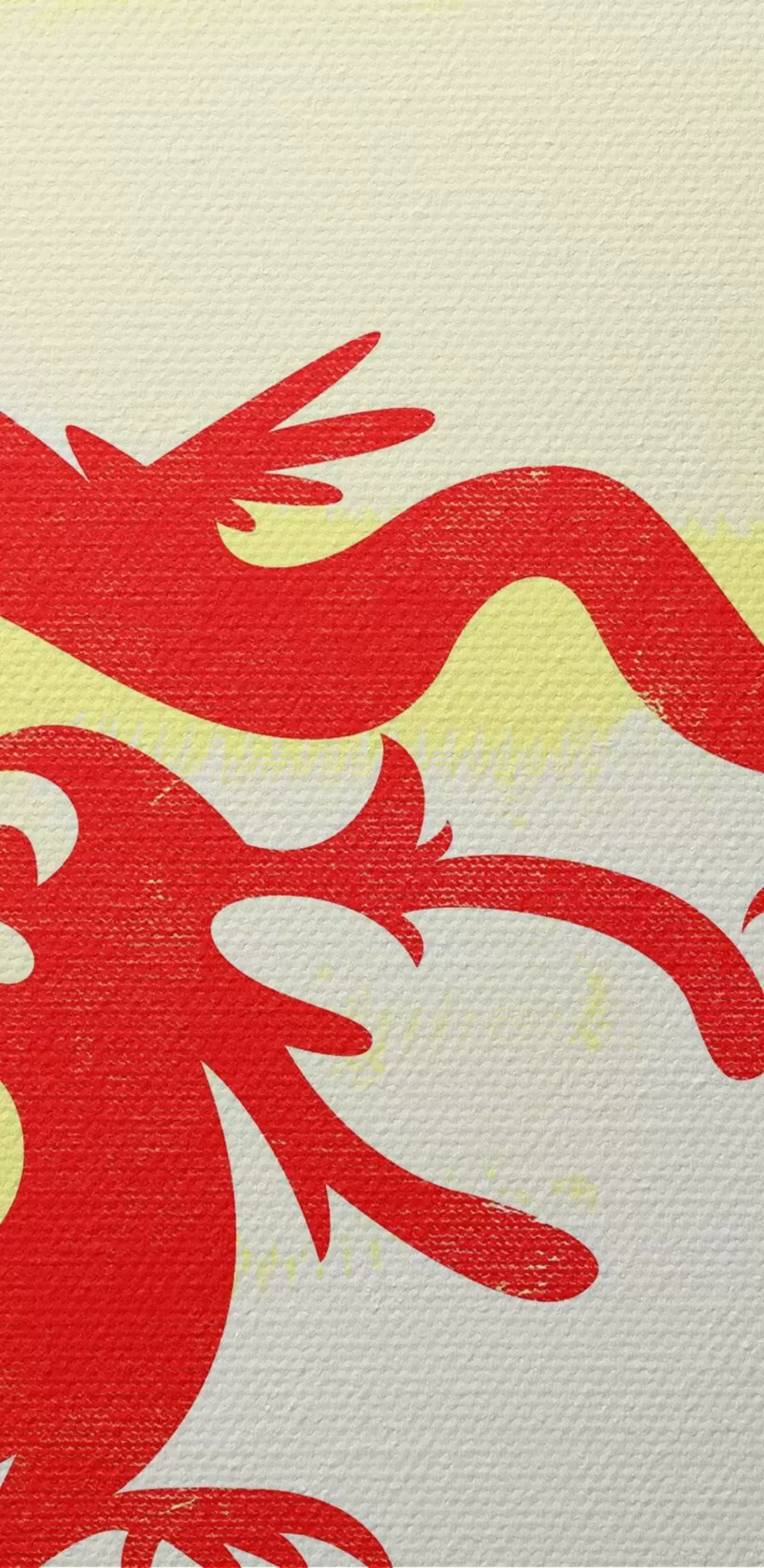 Runde Wandbilder Roter Drache auf gelbem Hintergrund Nr r38338