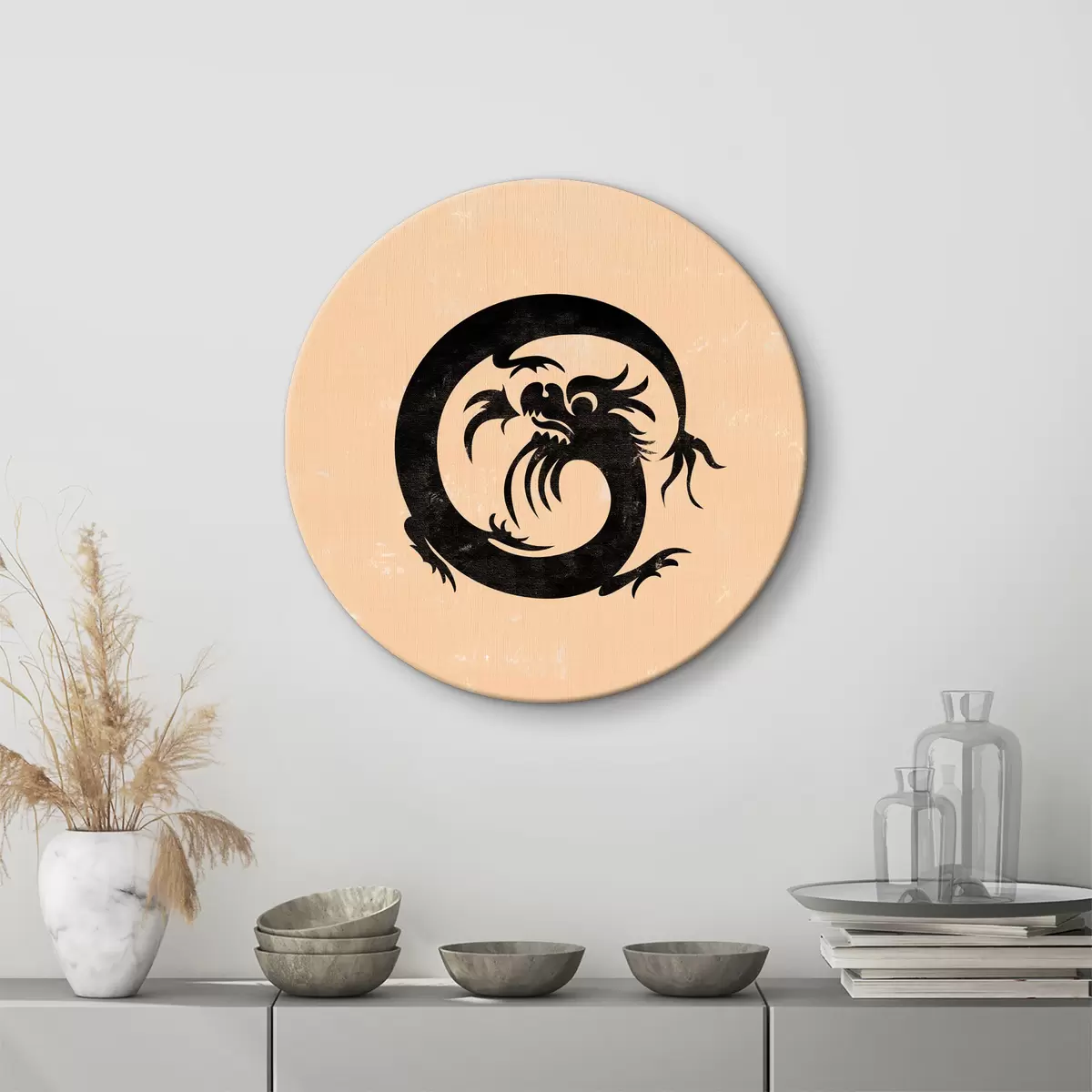Runde Wandbilder Schwarzer Drache mit langem Schwanz Nr r38339