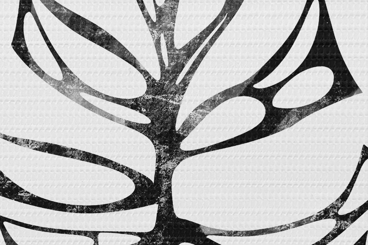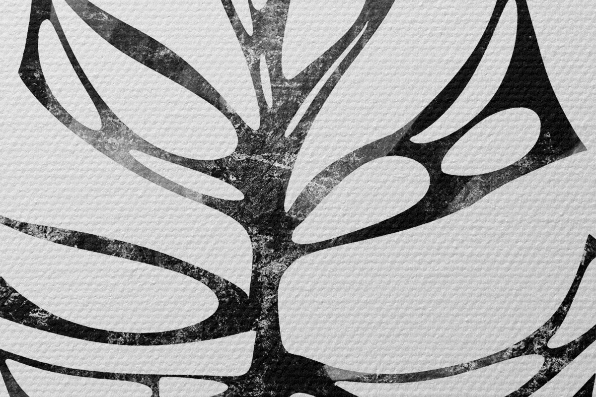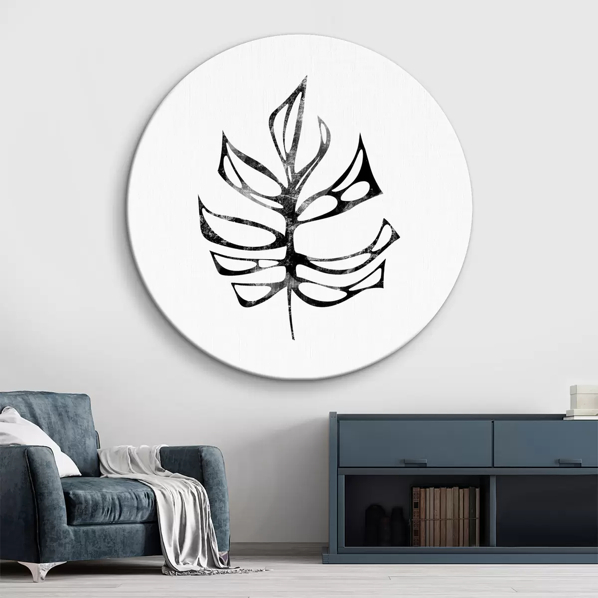 Runde Wandbilder Dekoratives Blatt mit Schnitten und Löchern, tropisch, strukturierte schwarze Farbe, Minimalismus, floral r38342