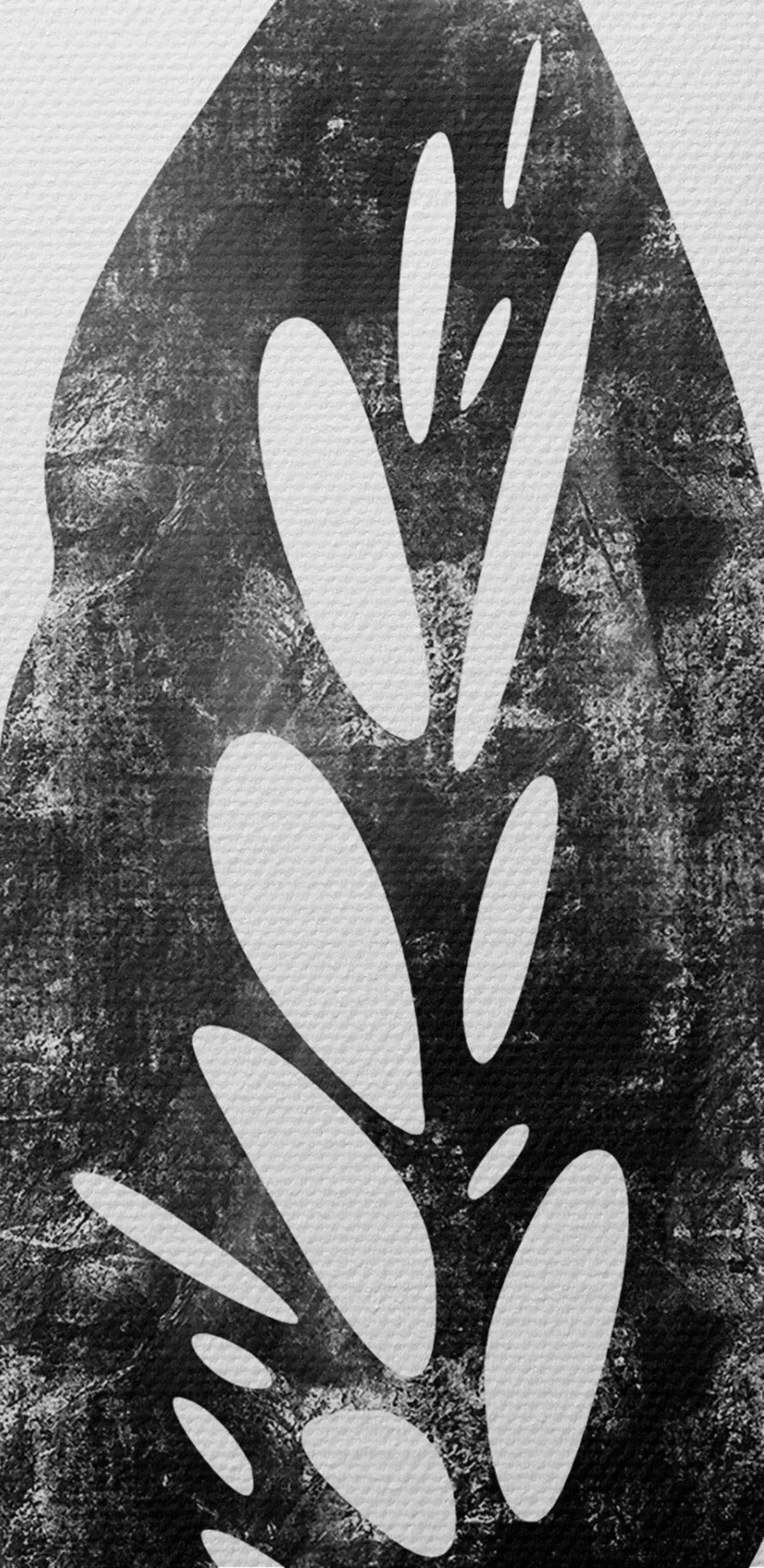 Runde Wandbilder Blatt in Schwarz und Weiß r38343
