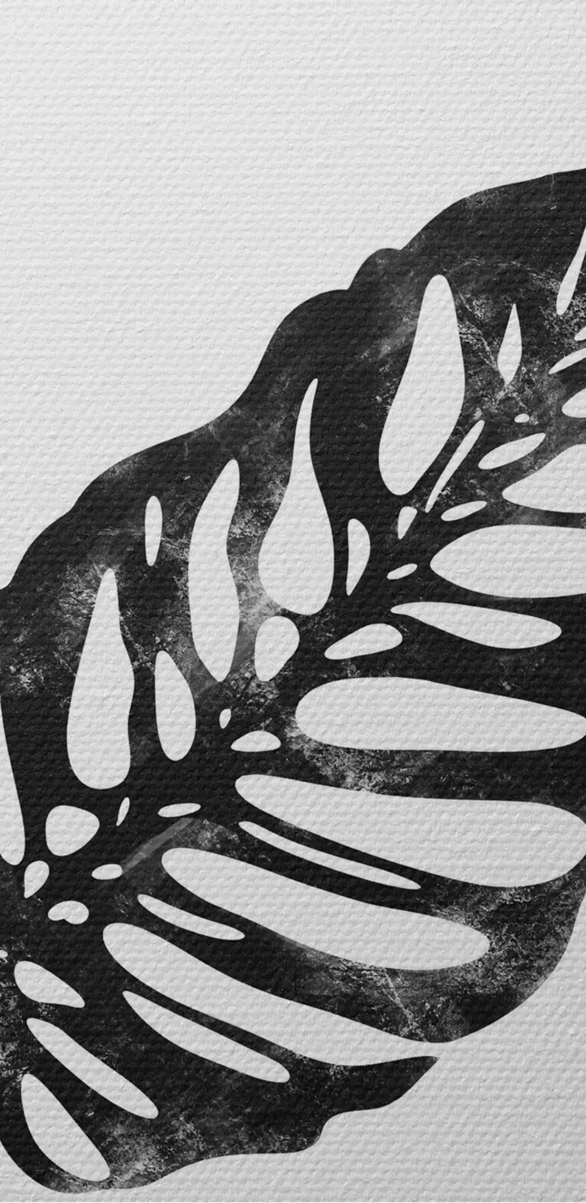 Runde Wandbilder Schwarzes Blatt auf weißem Hintergrund r38347