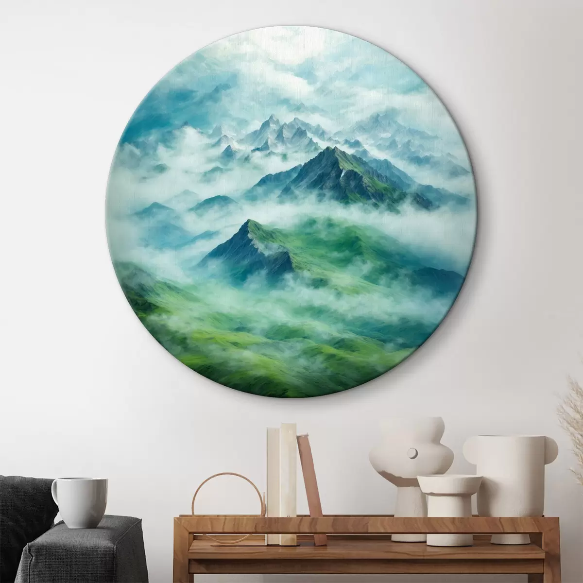 Runde Wandbilder Bergkette mit Wolken Nr r38359