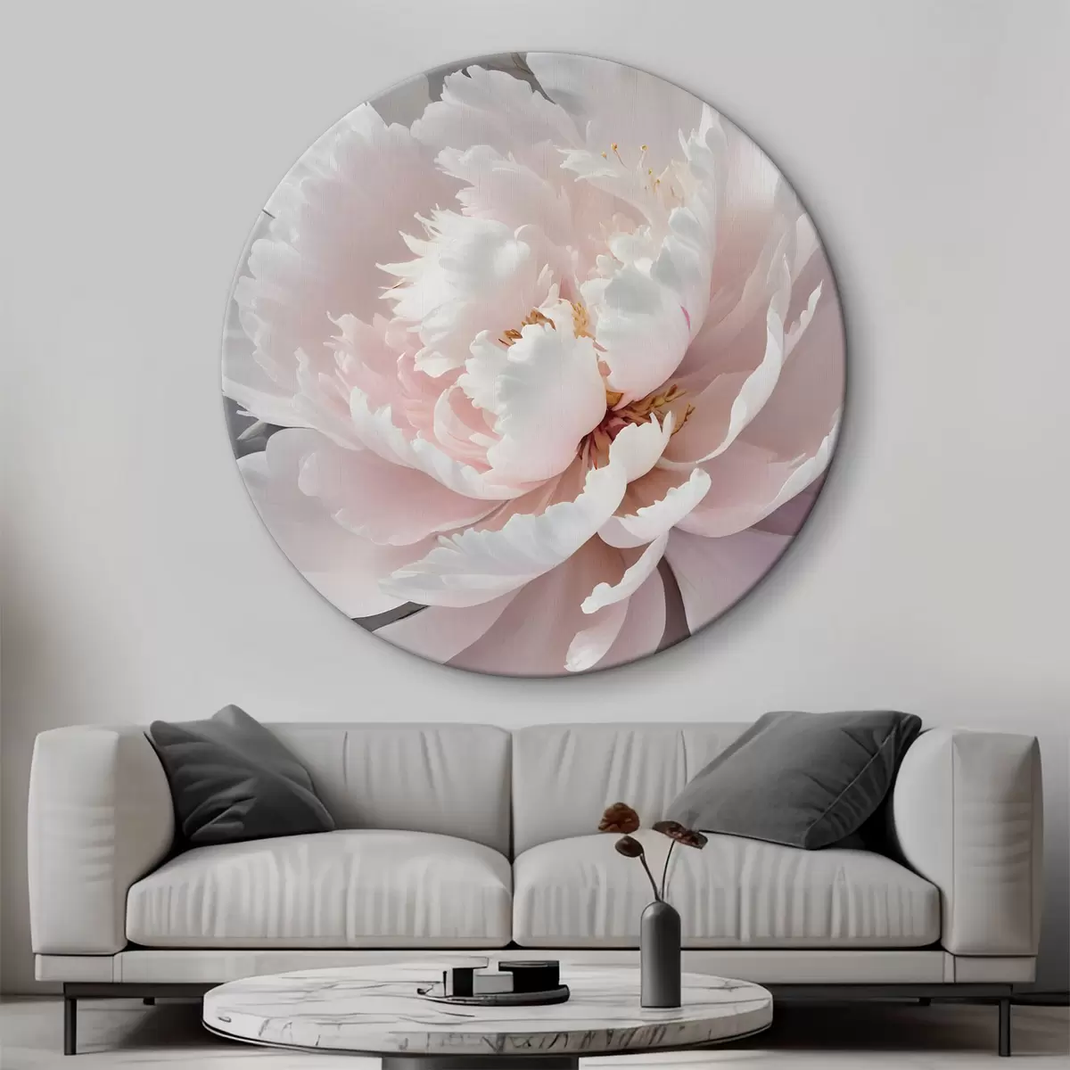 Runde Wandbilder Eine Nahaufnahme von großen, zarten rosa Pfingstrosenblüten vor einem dunklen Hintergrund Nr r38363