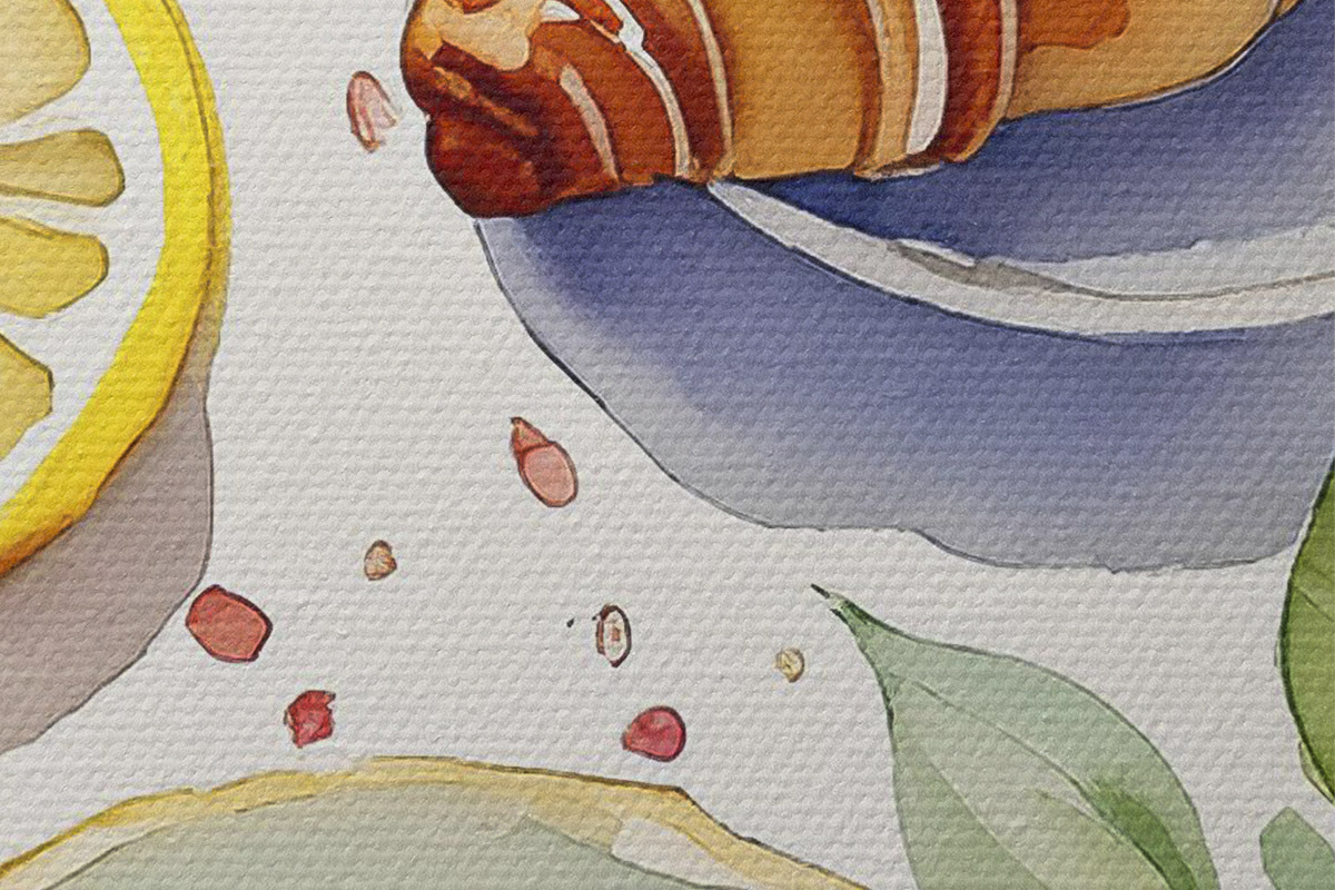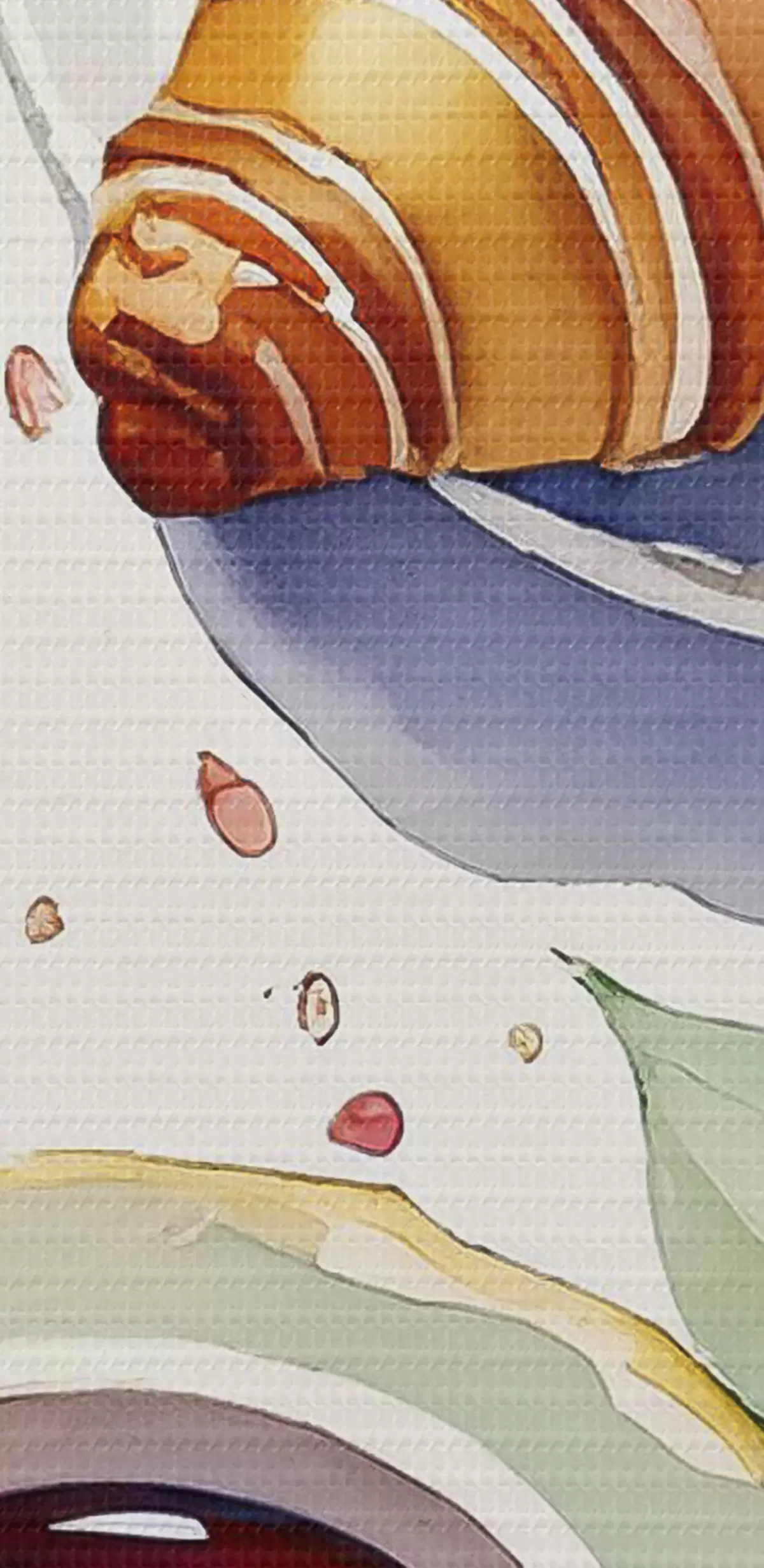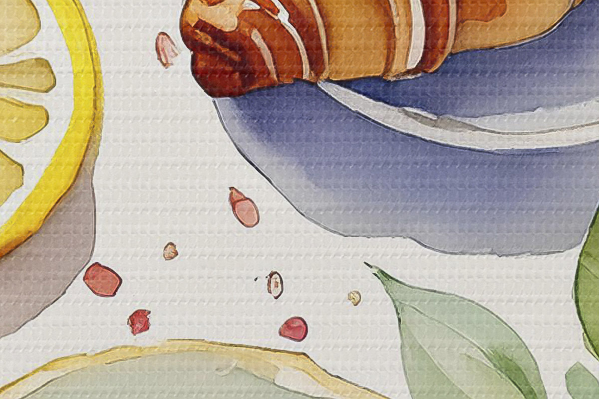 Runde Wandbilder Croissant Aquarell, Tasse Tee, Frühstück, Zitronen, rustikaler Stil r38389