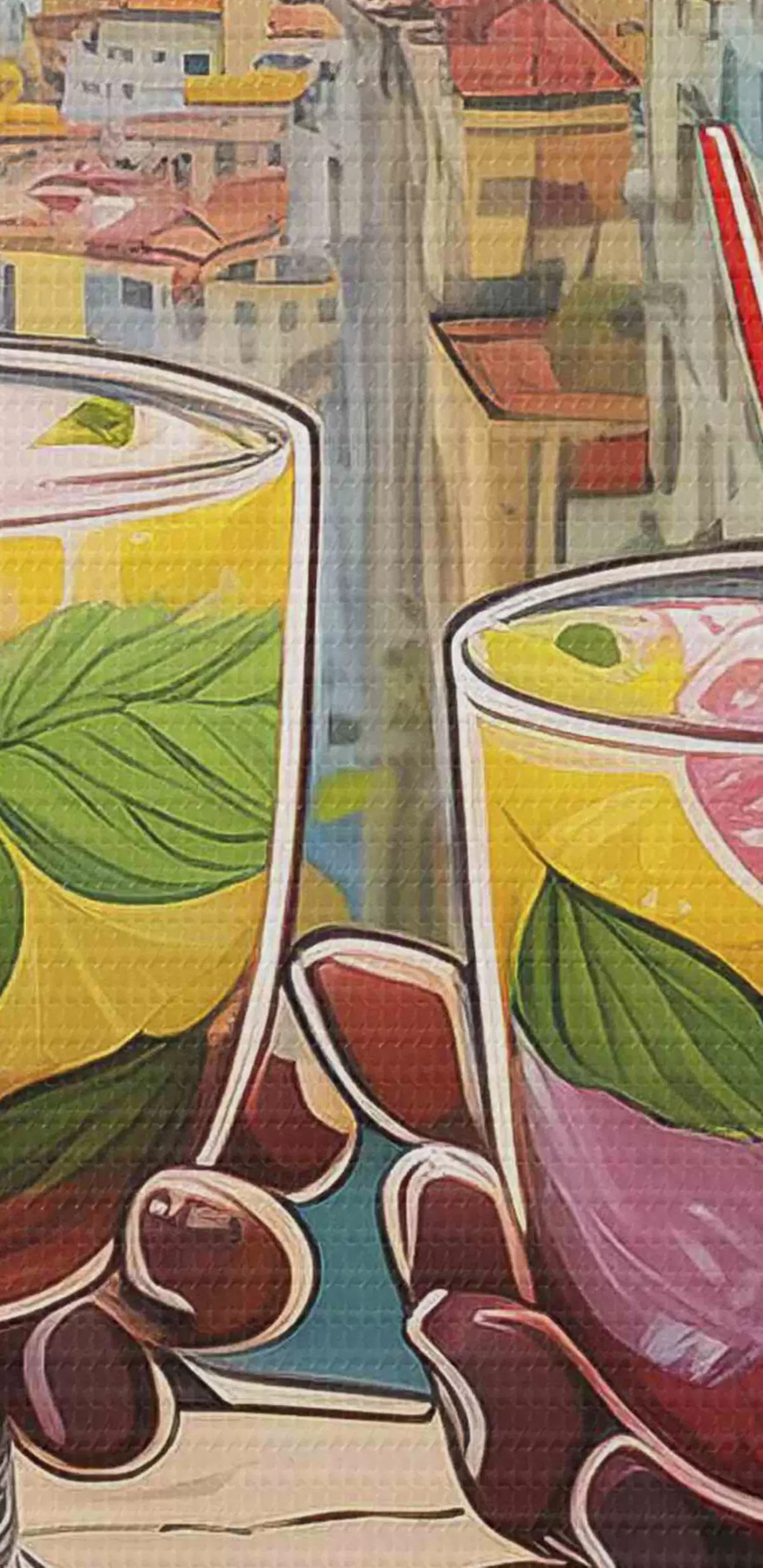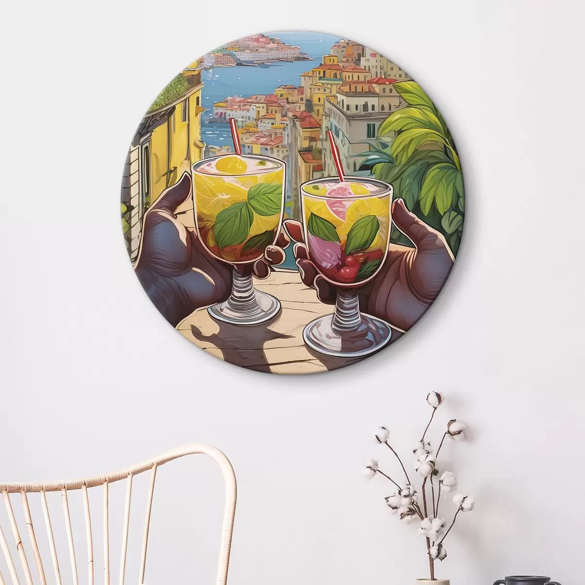 Runde Wandbilder Ein Paar Hände hält Gläser mit Früchten und Blättern r38405