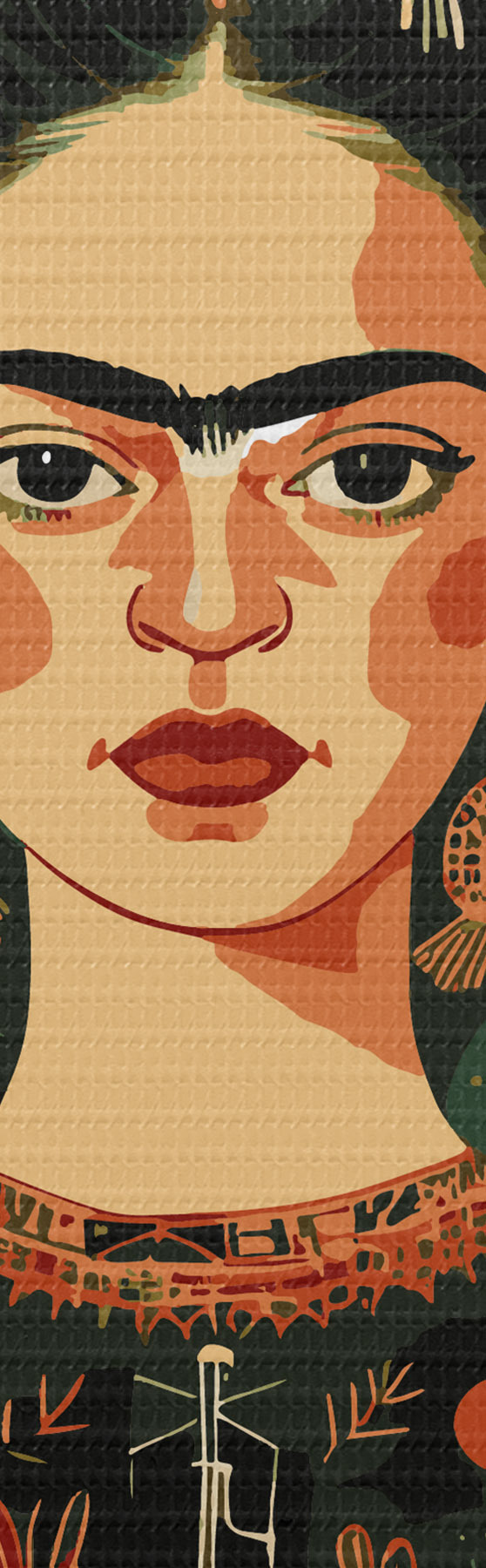 Runde Wandbilder Frida auf dem Hintergrund eines Kaktusmusters r38415