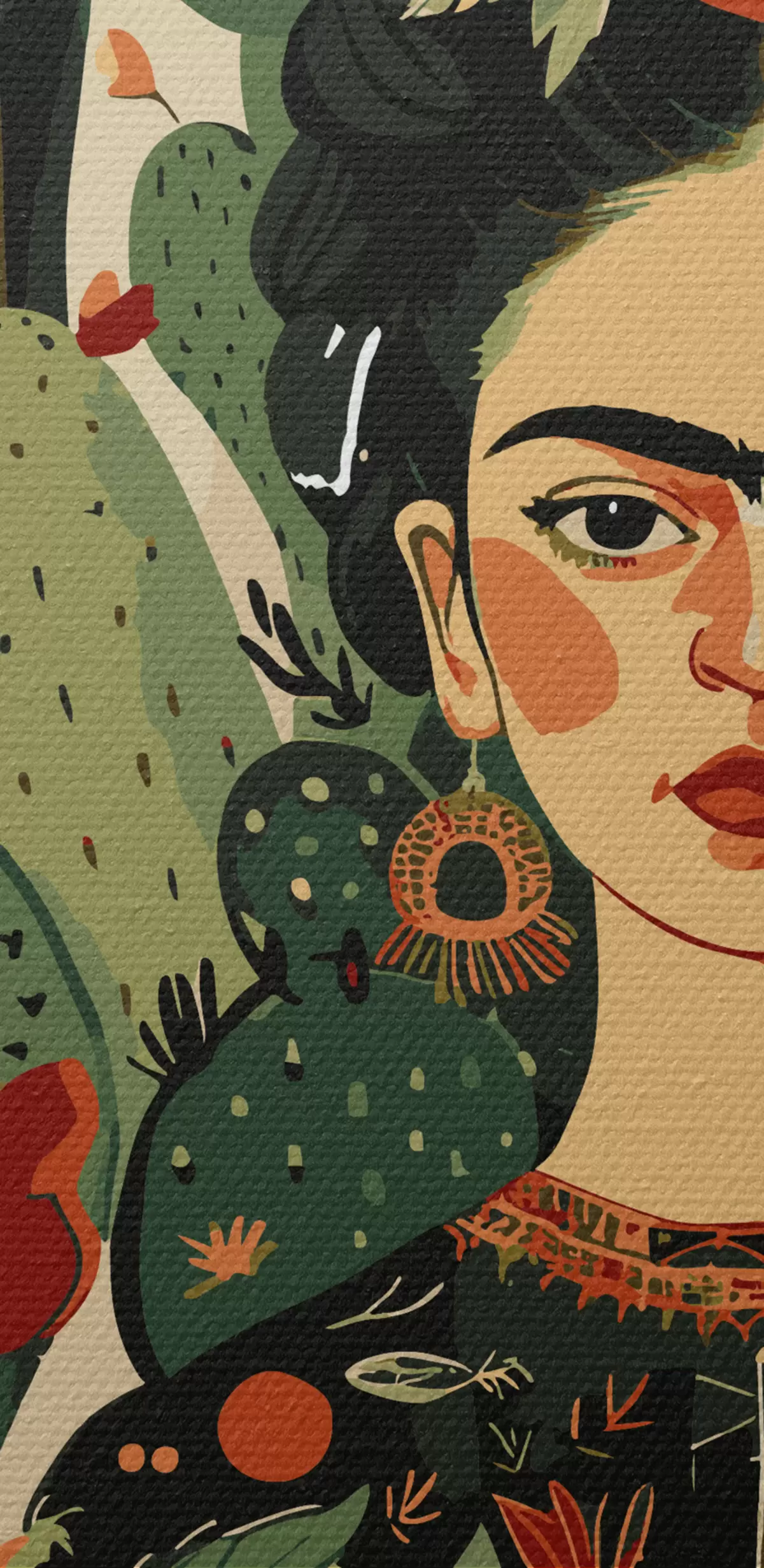 Runde Wandbilder Frida auf dem Hintergrund eines Kaktusmusters r38415