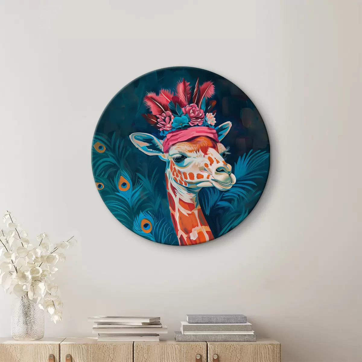 Runde Wandbilder Giraffe mit Hut Nr r38419