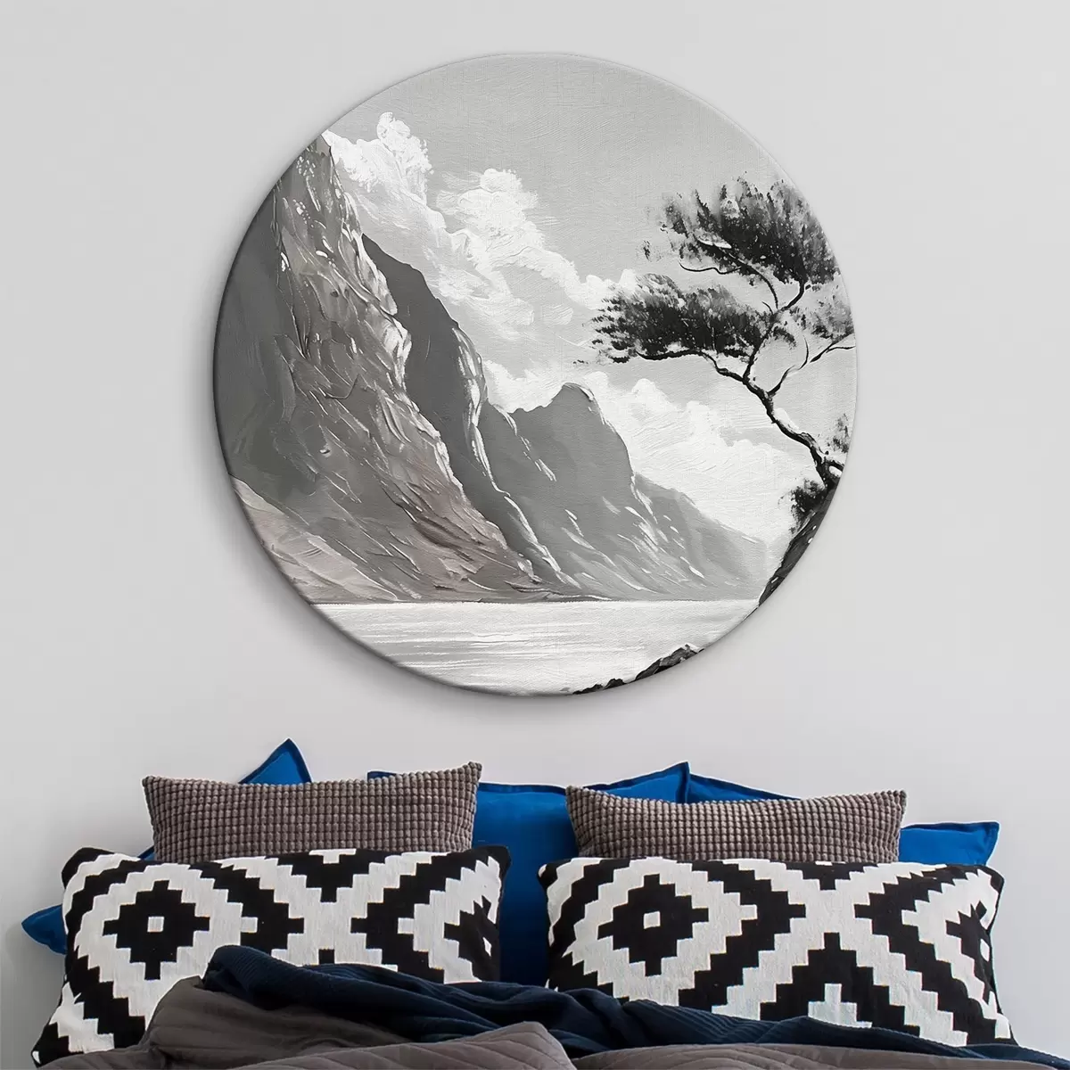 Runde Wandbilder Strand mit einem Baum und einer Wasserfläche Nr r38421