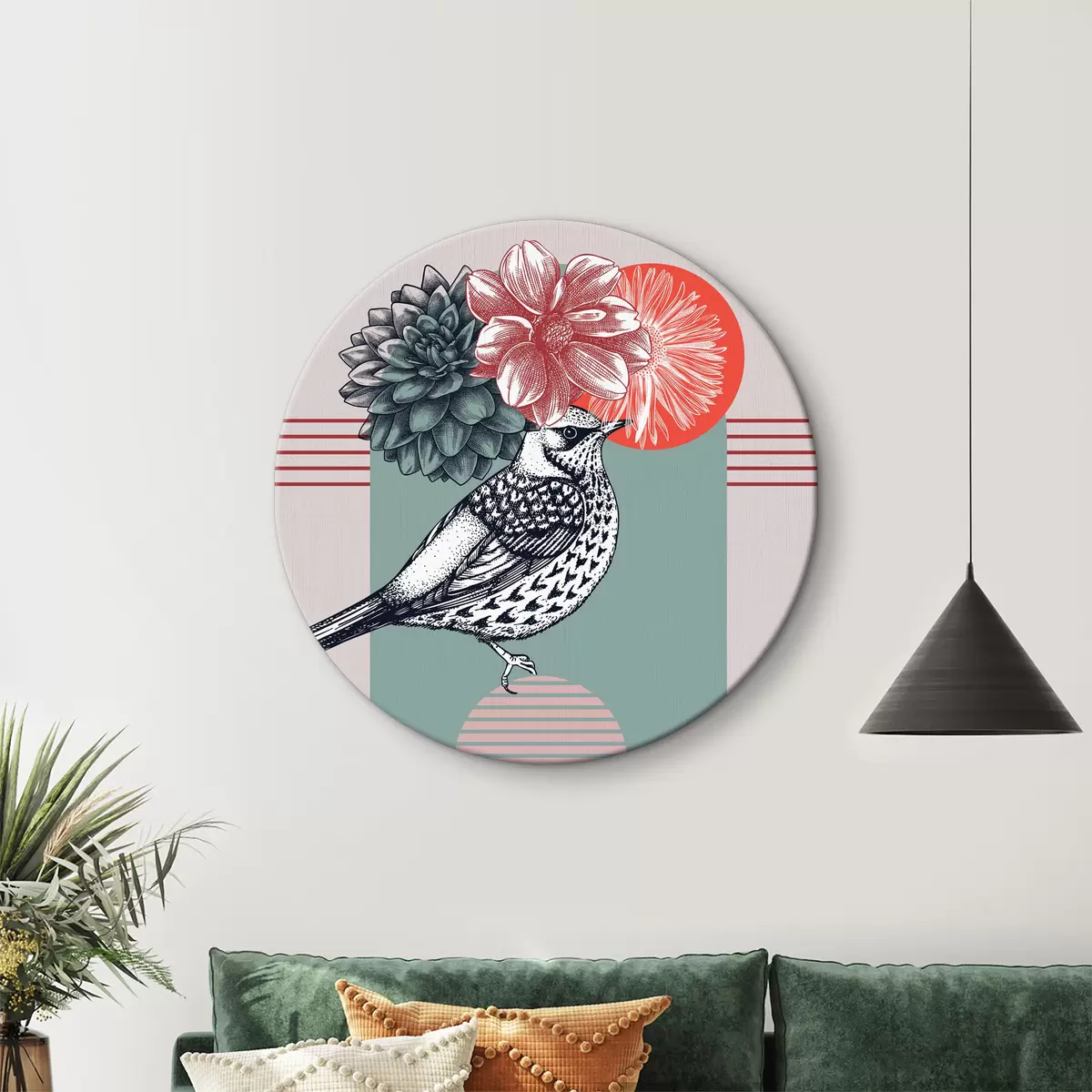 Runde Wandbilder Ein Vogel mit Blumen auf dem Kopf Nr r38442
