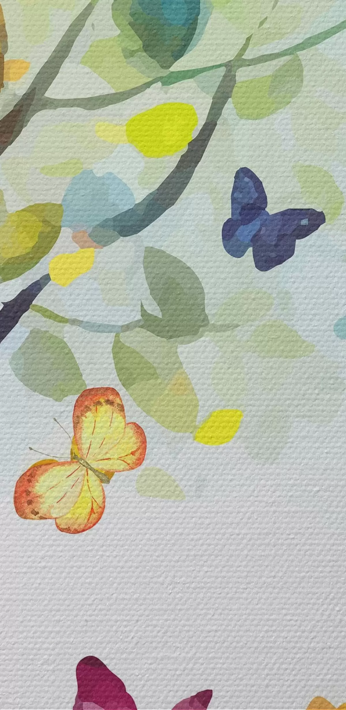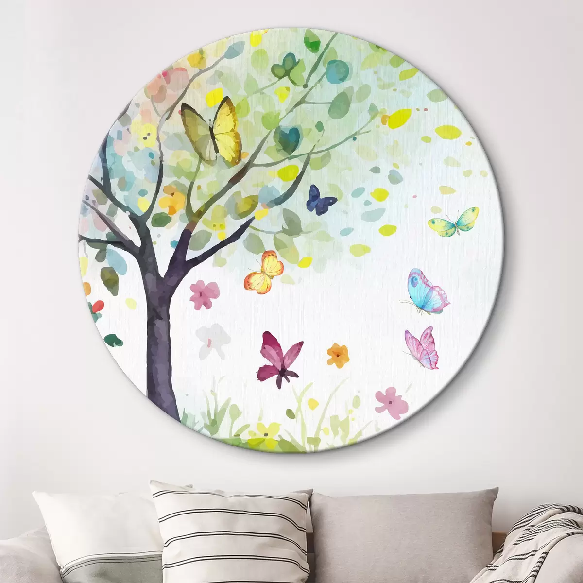 Runde Wandbilder Baum mit hellen Blättern, Aquarellfarbe, Schmetterlinge r38444