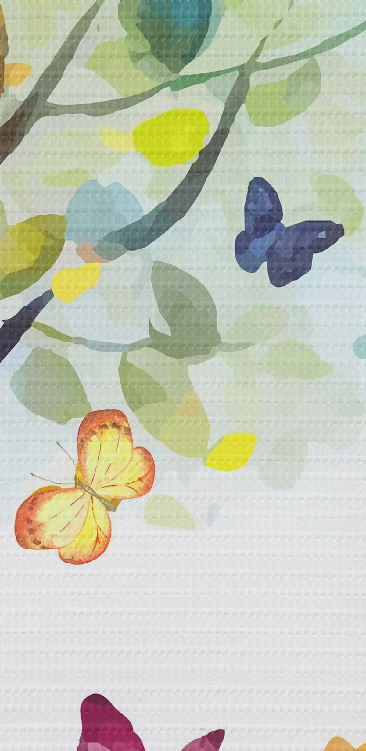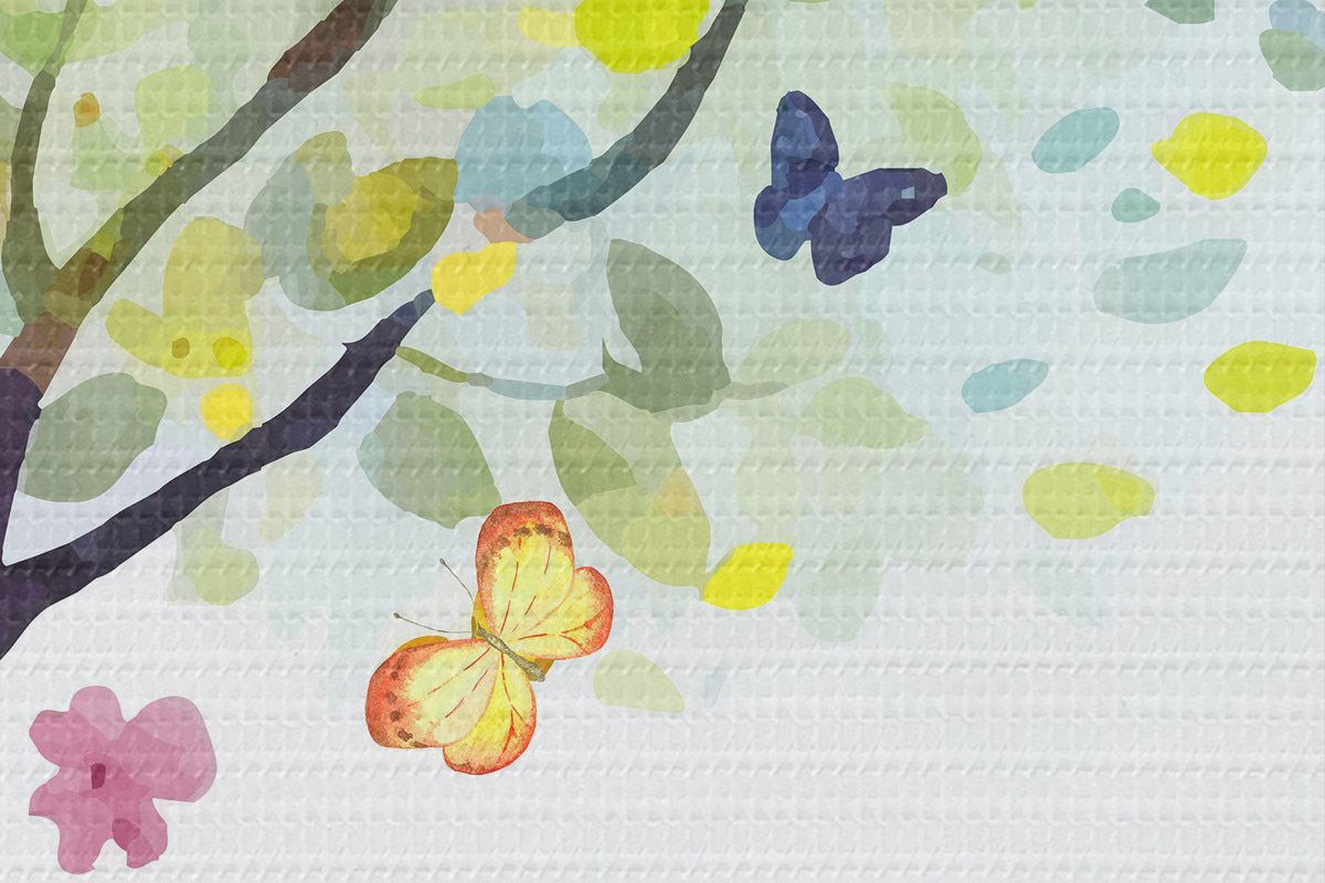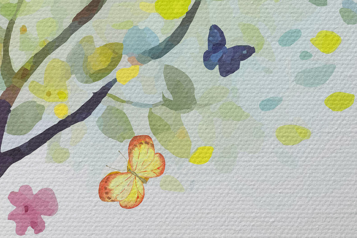 Runde Wandbilder Baum mit hellen Blättern, Aquarellfarbe, Schmetterlinge Nr r38444