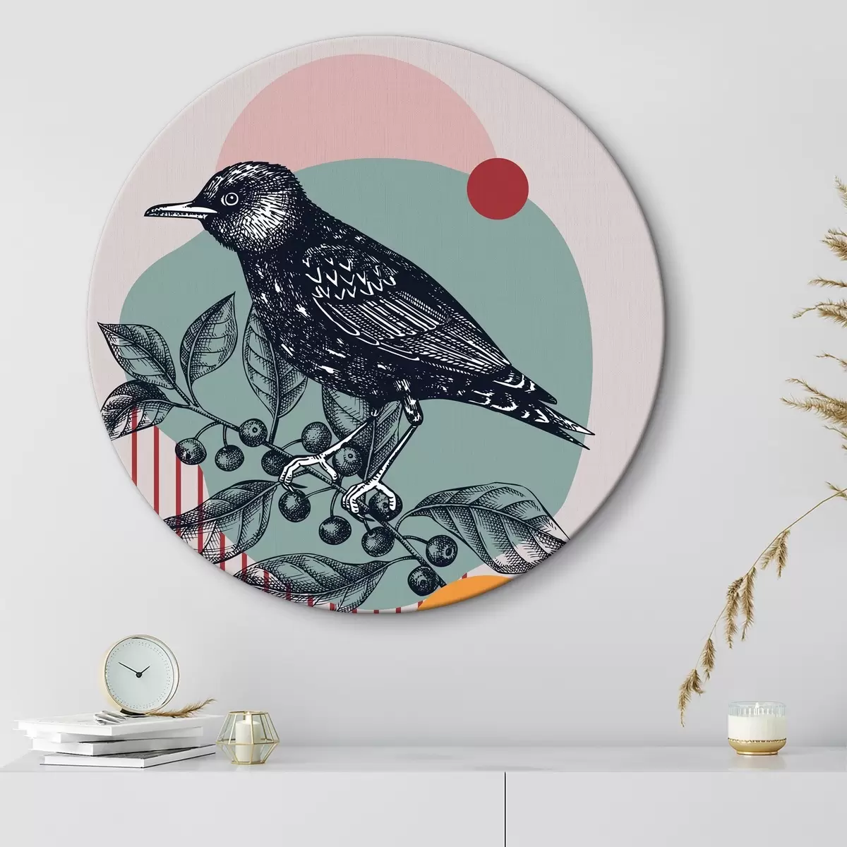 Runde Wandbilder Vogel auf einem Ast Nr r38445