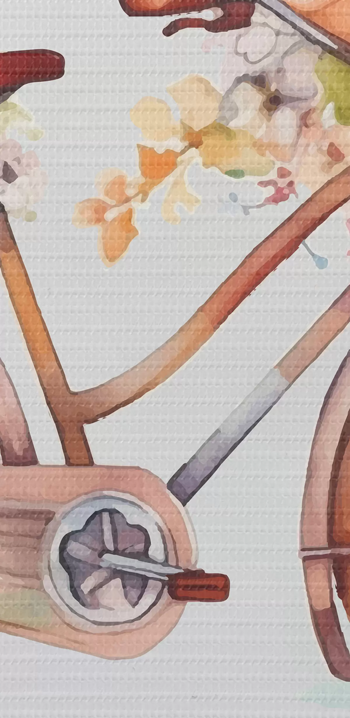 Runde Wandbilder Fahrrad mit hellen Farben, Aquarellfarbe r38447
