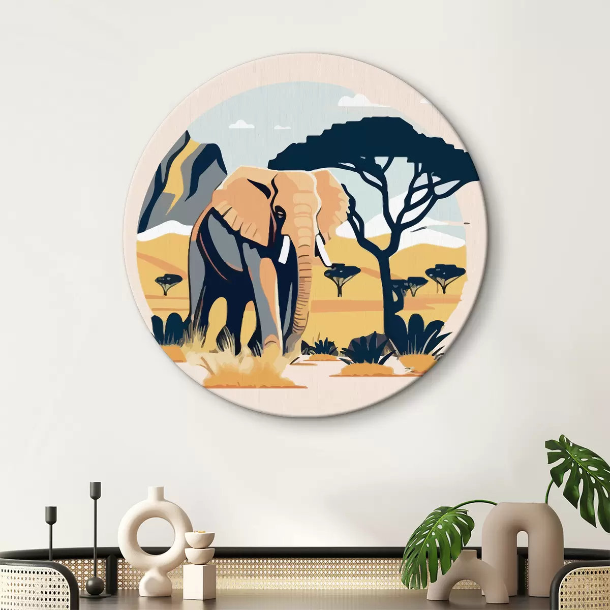 Runde Wandbilder Elefant, Bäume, Berg, Safari, Pastell Nr r38448
