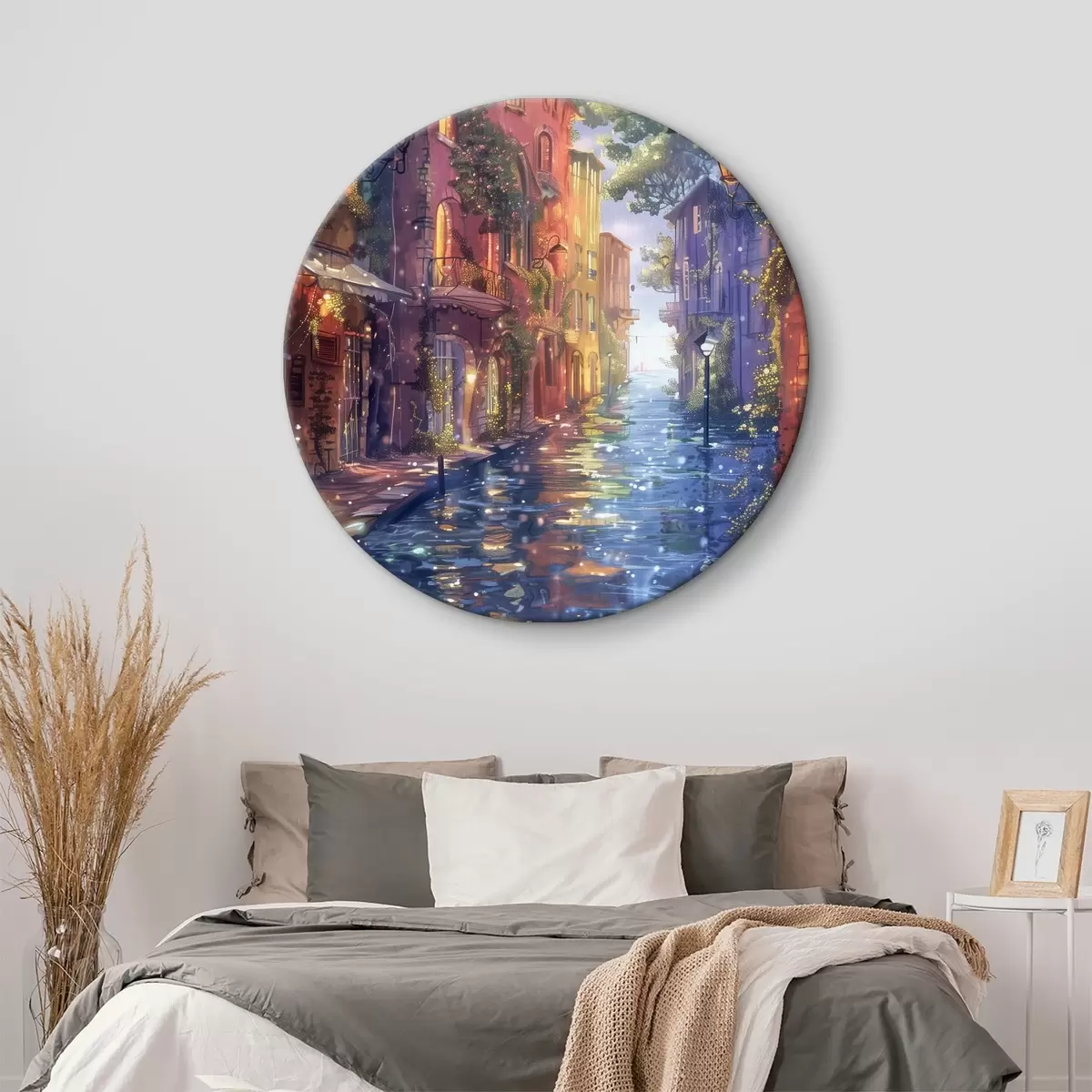 Runde Wandbilder Wasserstraße mit Gebäuden und Bäumen r38450