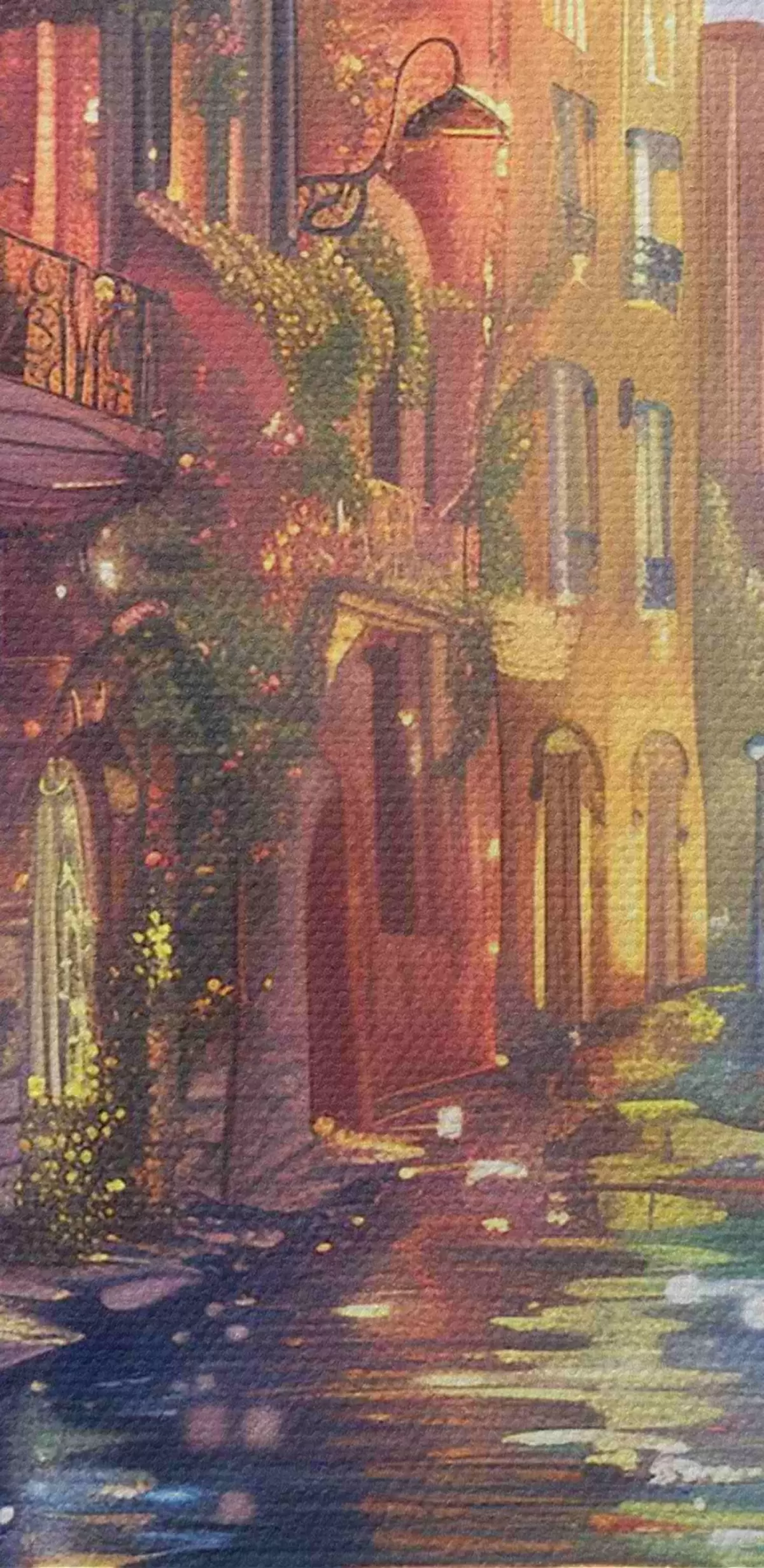 Das Gemälde kann sofort nach Erhalt aufgehängt werden. Das Gemälde wird auf einen 2 cm breiten Holzkeilrahmen aufgespannt.