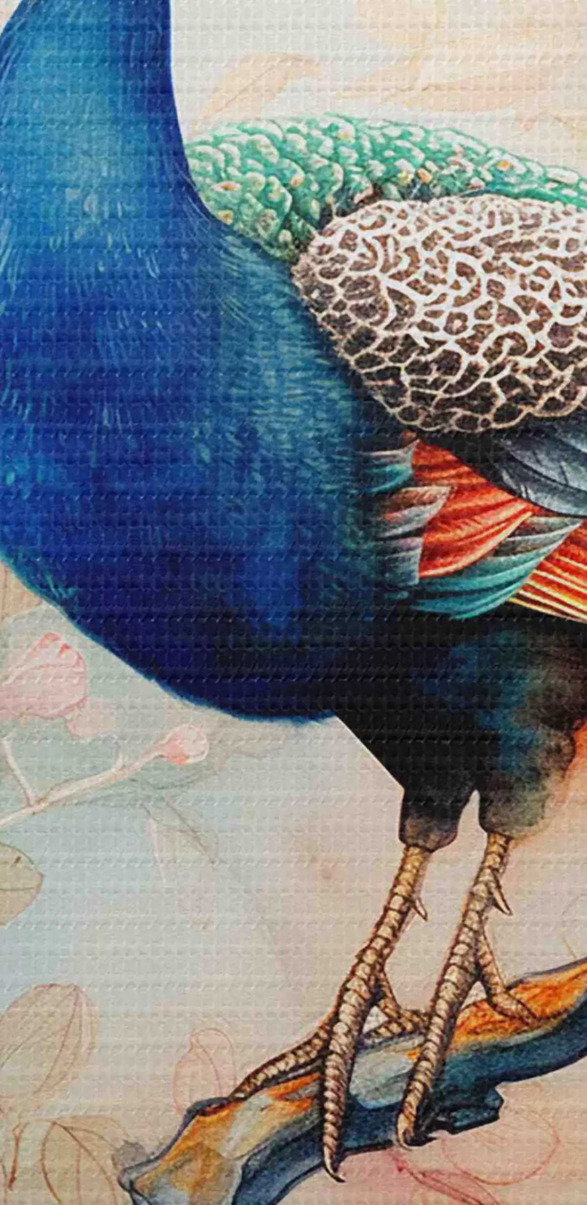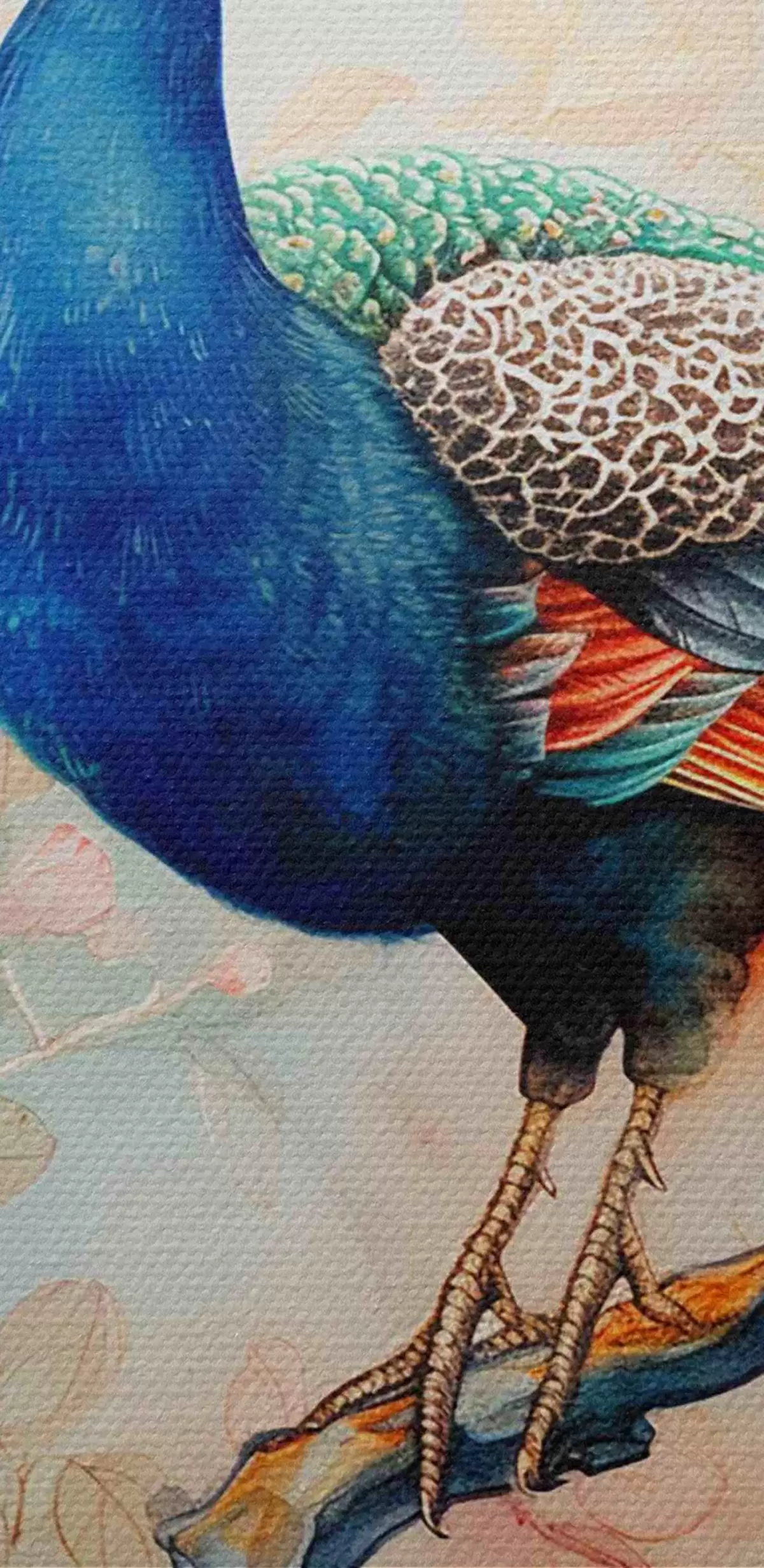 Runde Wandbilder Ein Gemälde, das einen Pfau auf einem Ast mit Blumen zeigt Nr r38452