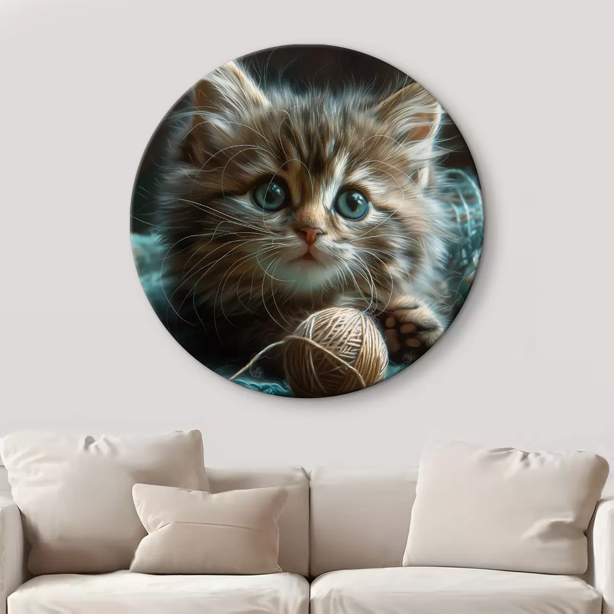 Runde Wandbilder Kätzchen und Fadenknäuel r38464