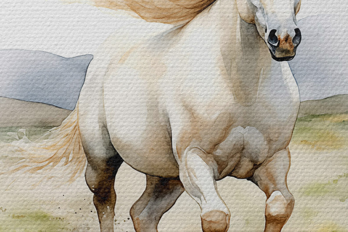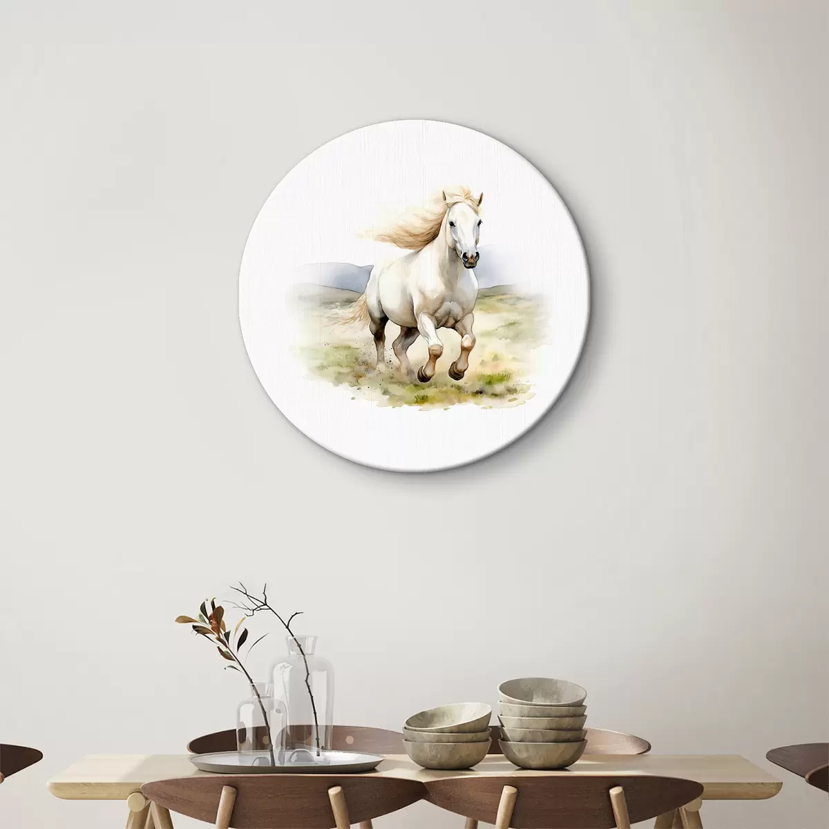 Runde Wandbilder Weißes Pferd läuft auf dem Feld Nr r38477