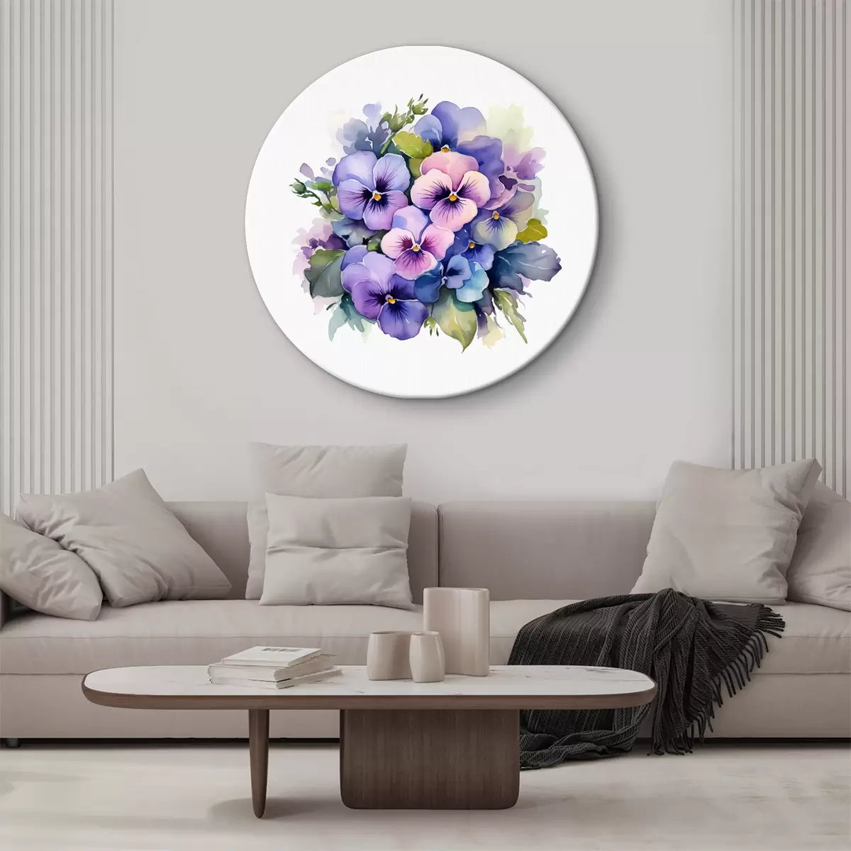 Runde Wandbilder Veilchen Aquarell Illustration, Blumenstrauß, Blumen, blau, lila, grün Nr r38486