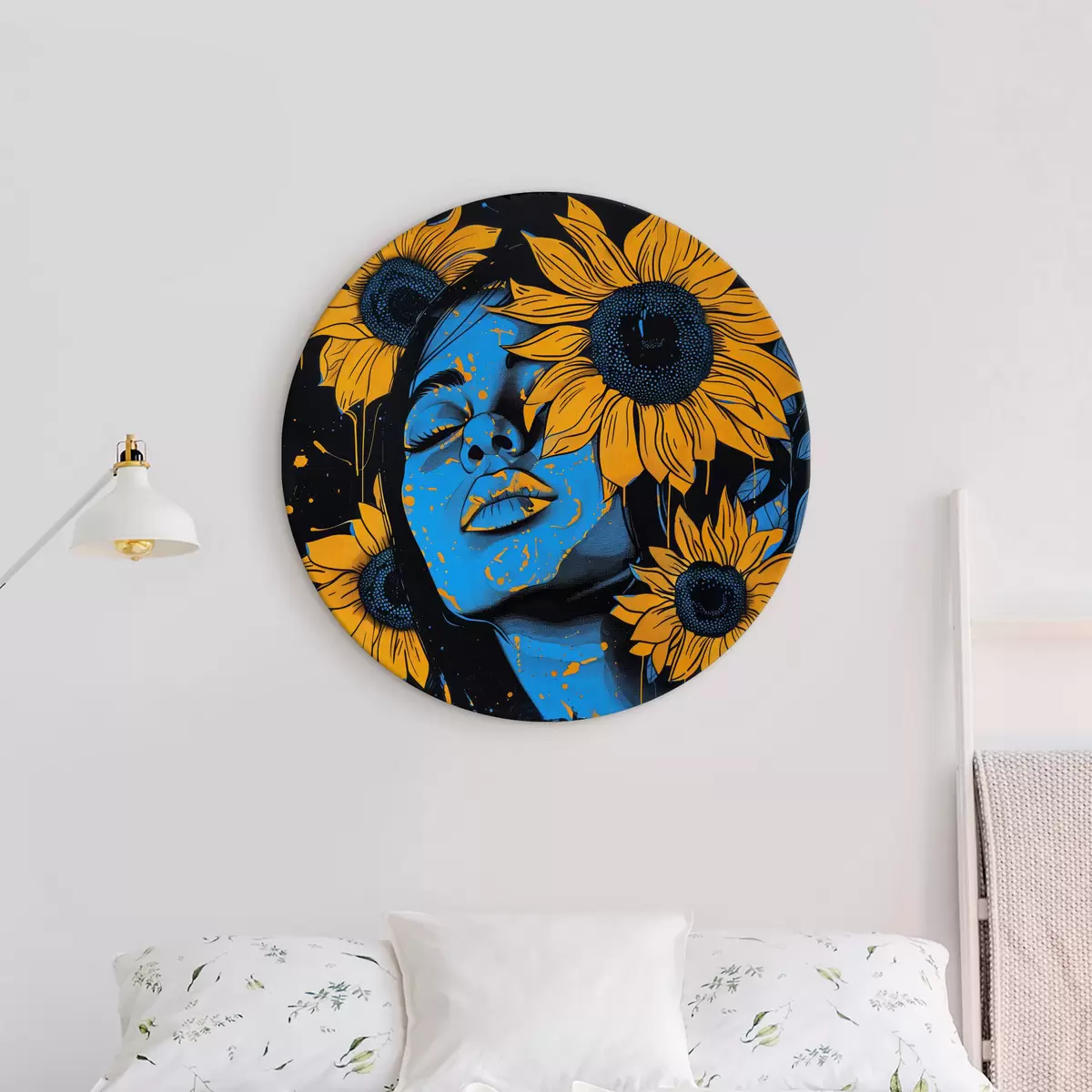 Runde Wandbilder Ein Gemälde einer Frau mit Sonnenblumen Nr r38505