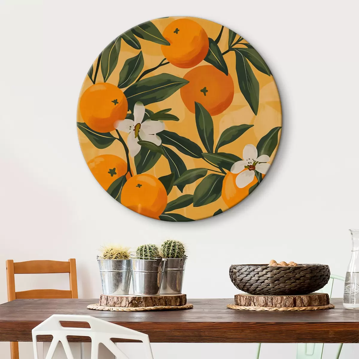 Runde Wandbilder Muster aus orangefarbenen und weißen Blumen r38513