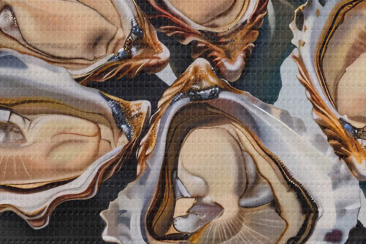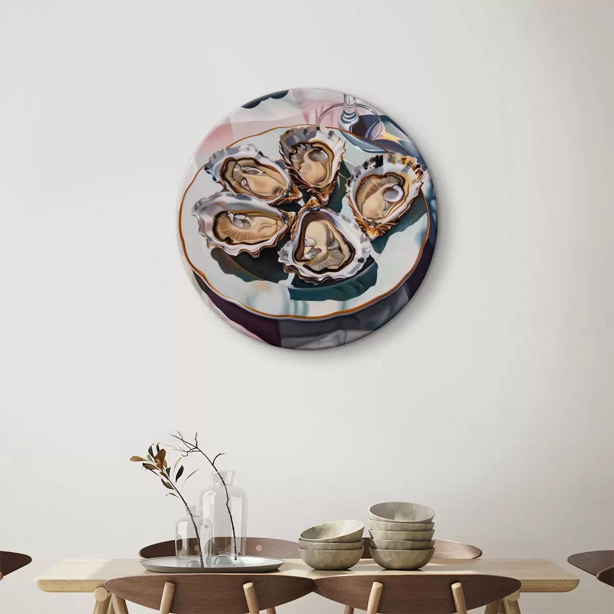 Runde Wandbilder Ein Teller mit Austern und ein Glas Wein Nr r38514