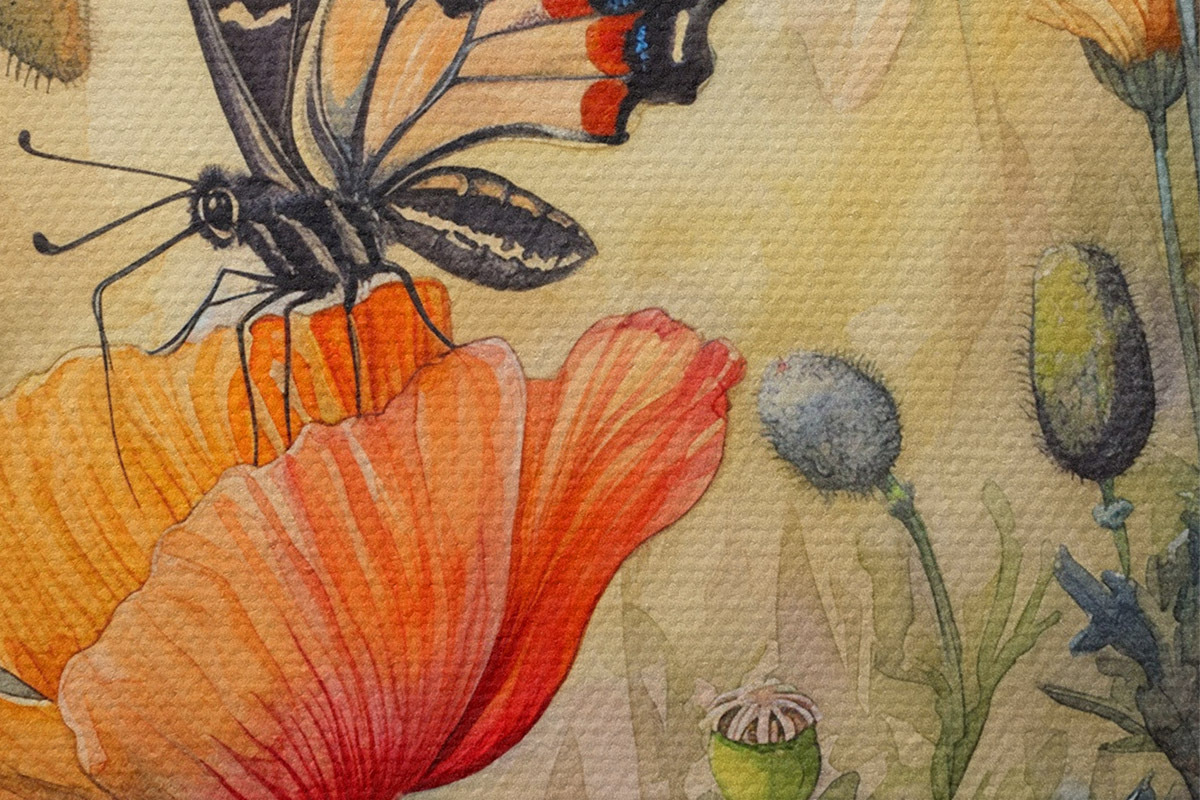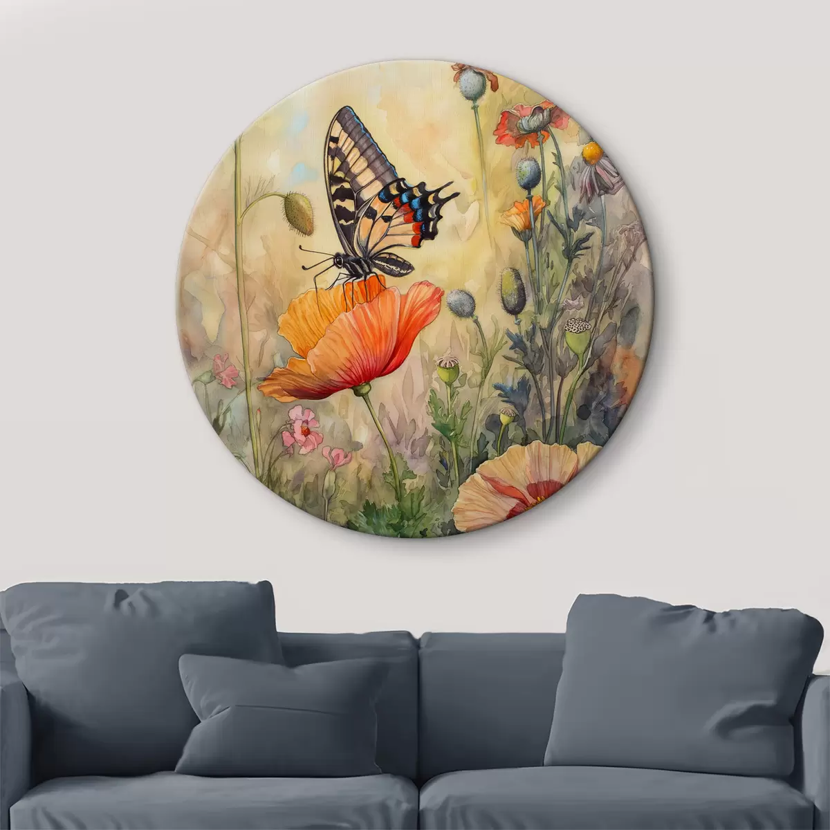 Runde Wandbilder Mohnfeld und Schmetterling Nr r38520