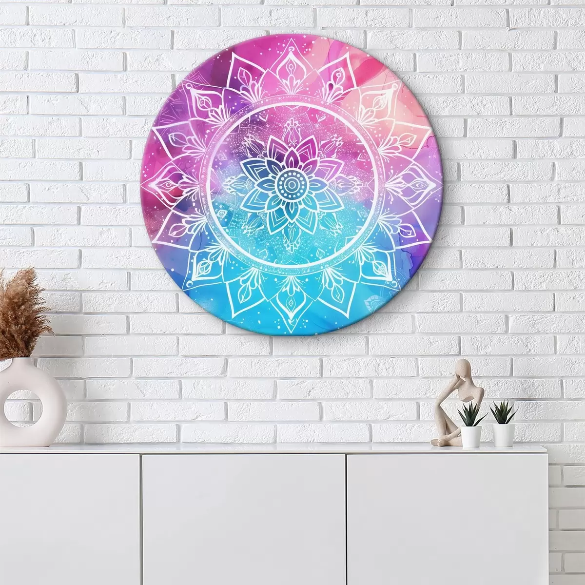 Runde Wandbilder Weißes Mandala auf farbigem Hintergrund r38529